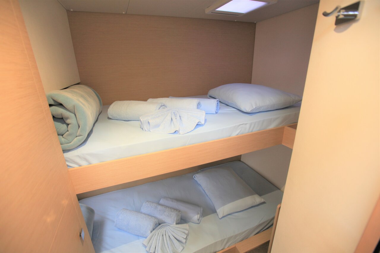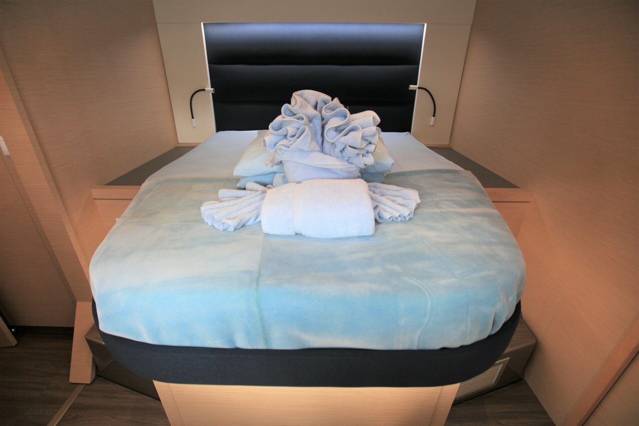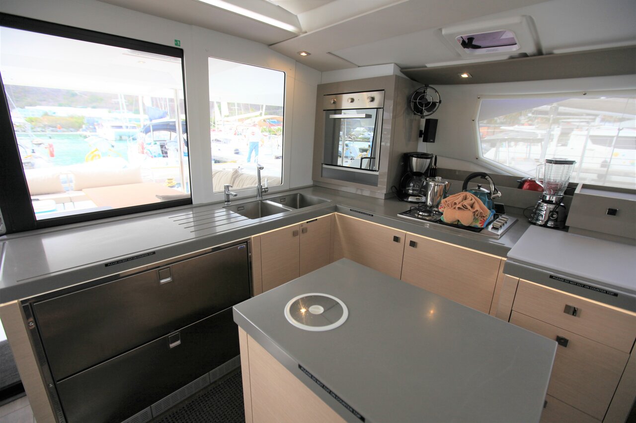 | Inside | 110 V Steckdose, Fäkalientank, FUSION Sound System, Gasherd, Gefrierschrank, Generator, Inverter 12V/220V, Klimaanlage (ohne Landstrombedarf), Kühlschrank, Landstromkabel, Pantryausstattung, Radio mit Bluetooth, Ventilatoren in Salon und Kabinen, WC (elektr.) |