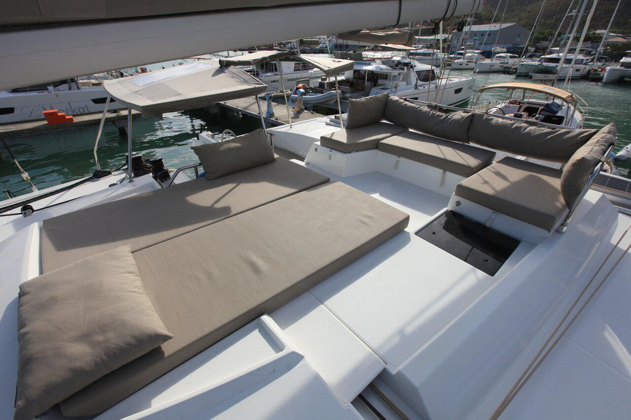 | Outside | Anker mit Kette, Badeplattform (hydr.), Biminitop, Bootshaken, Cockpitkühlschrank, Cockpitleuchte, Cockpitpolster, Deckbürste, elektr. Ankerwinsch, elektr. Großwinsch, elektr. Winsch, Fender, Festmacherleinen, Grill, Kunststoff-Eimer (Pütz), Winschen |