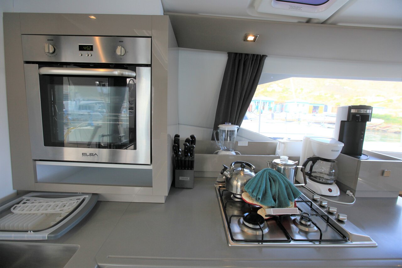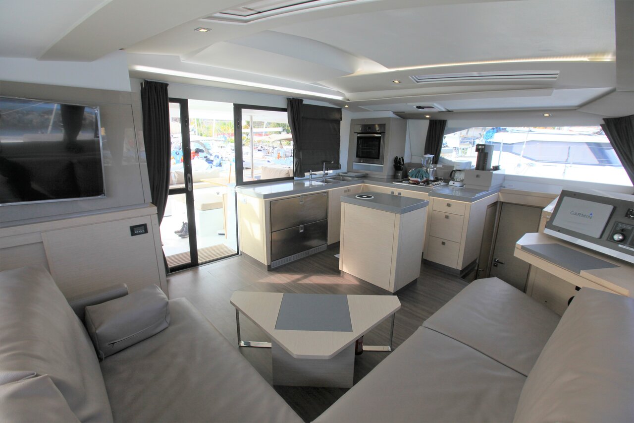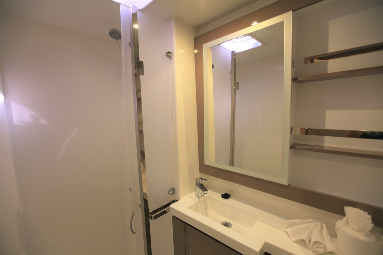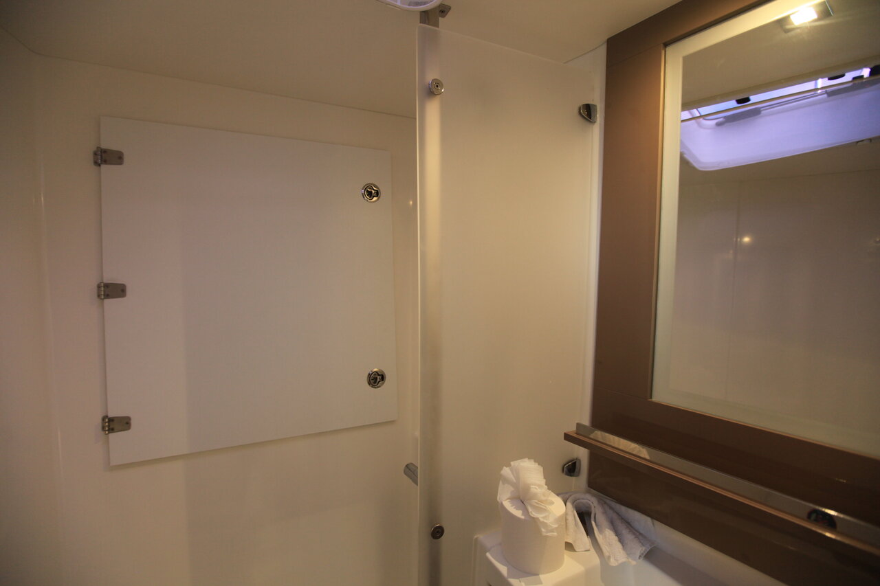 | Inside | 110 V Steckdose, Fäkalientank, FUSION Sound System, Gasherd, Gefrierschrank, Generator, Inverter 12V/220V, Klimaanlage (ohne Landstrombedarf), Kühlschrank, Landstromkabel, Pantryausstattung, Radio, TV, Ventilatoren in Salon und Kabinen, WC (elektr.) |
