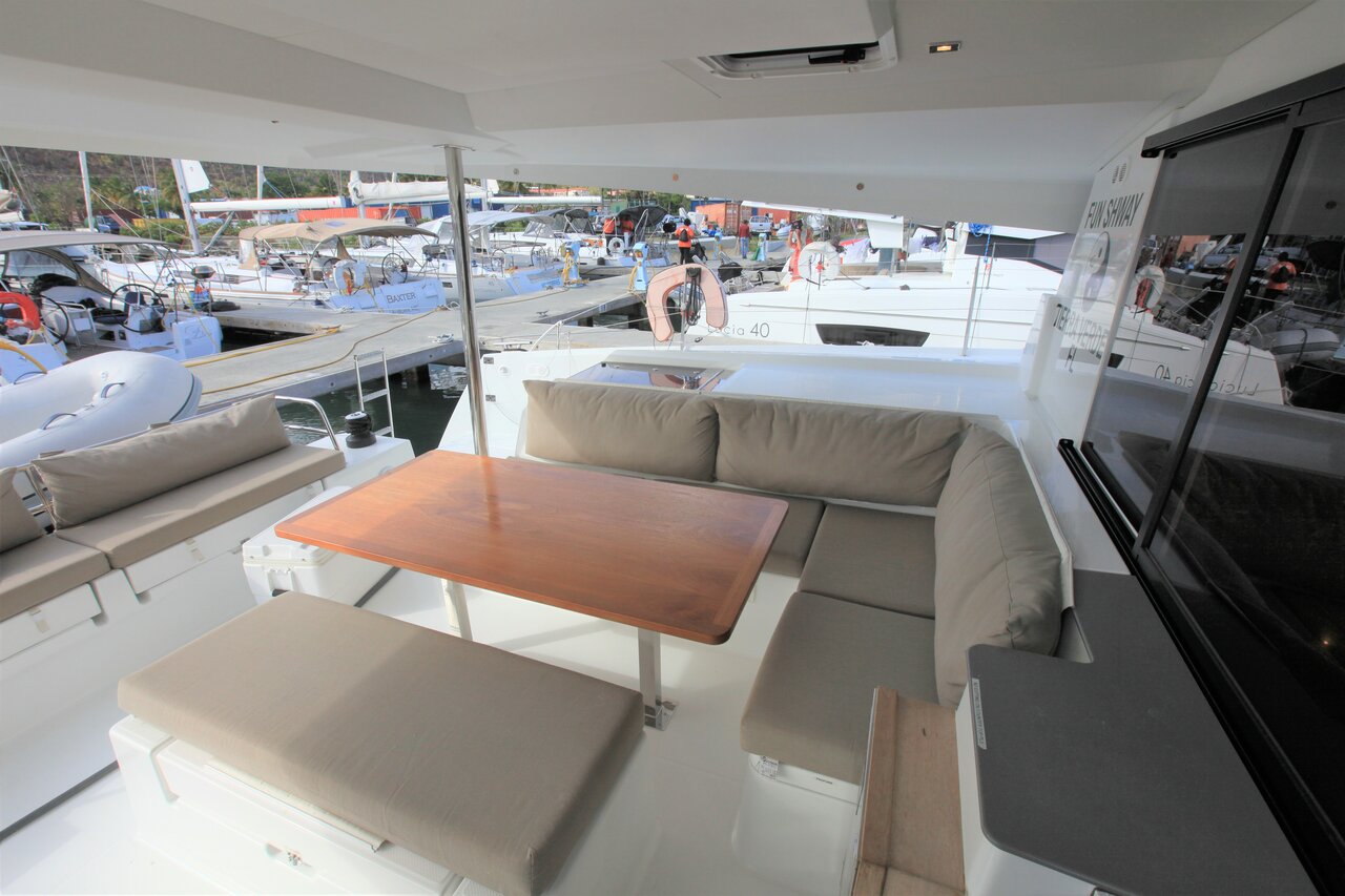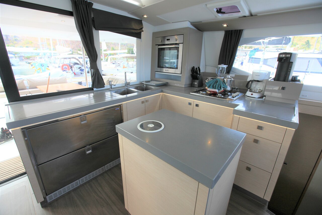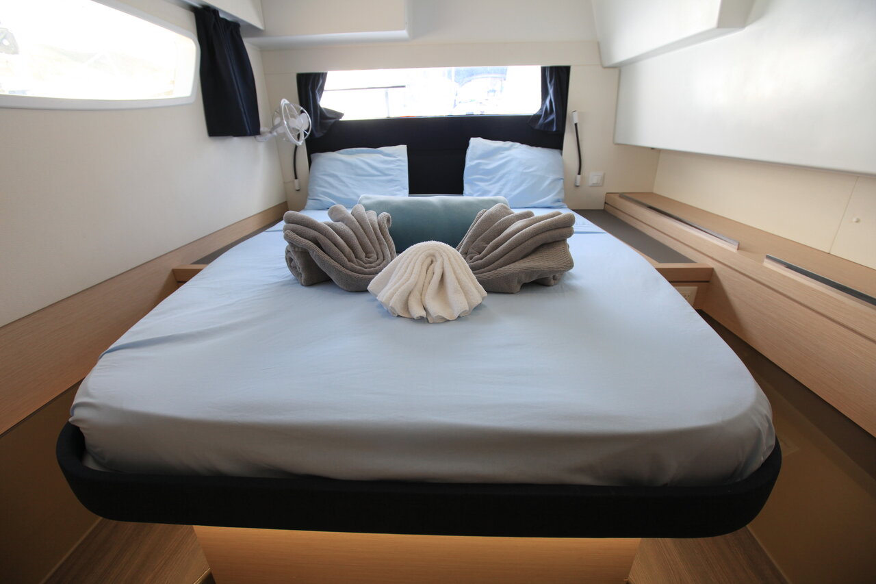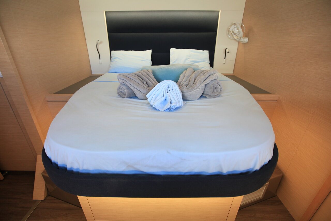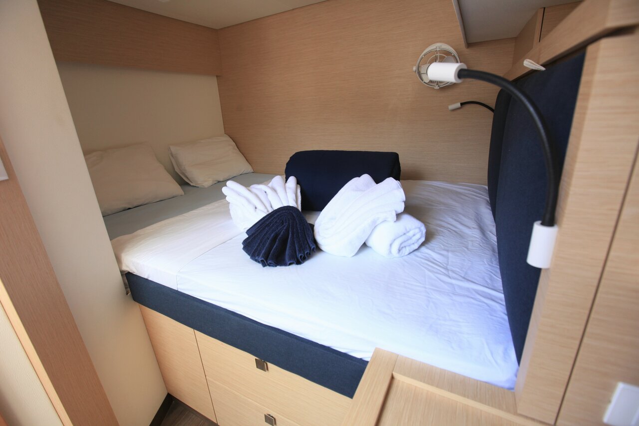 | Inside | 110 V Steckdose, Fäkalientank, FUSION Sound System, Gasherd, Gefrierschrank, Generator, Inverter 12V/220V, Klimaanlage (ohne Landstrombedarf), Kühlschrank, Landstromkabel, Pantryausstattung, Radio, TV, Ventilatoren in Salon und Kabinen, WC (elektr.) |