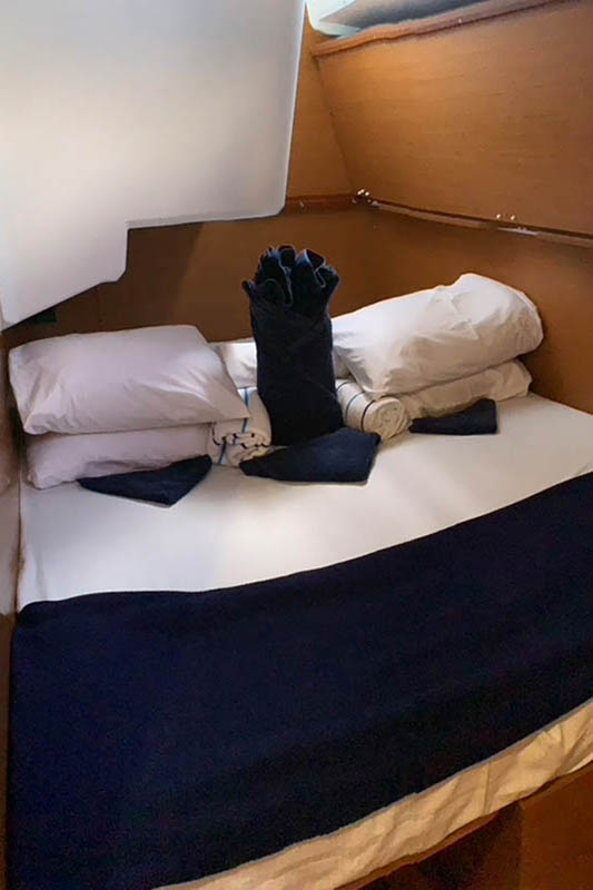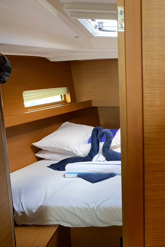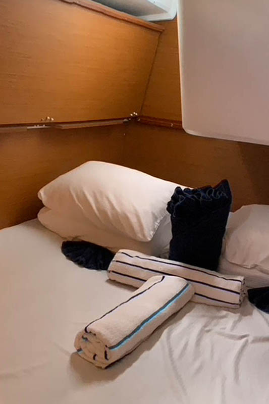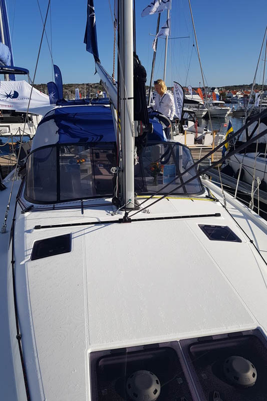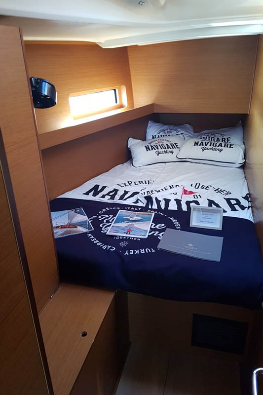 | Safety | Bootsmannstuhl, Bordapotheke, Bordwerkzeug, Bugstrahlruder, elektr. Bilgepumpe, Feststoffschwimmwesten, Feuerlöscher, Flaggen, Handbilgepumpe, Lifebelts, Motor-Ersatzteile, Navigationslichter, Nebelhorn, Notpinne, Notsignale, Radarreflektor, Rettungsinsel, Taschenlampe, Zweitanker |