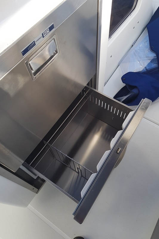 | Inside | Elektrische Filterkaffeemaschine, Frischwasserpumpe, Generator, Inverter 12V/220V, Kleiderbügel, Klimaanlage, Klobürste, Kühlschrank, Ladegerät, Landstromkabel, LED-Innenleuchten, Mikrowelle, Mixer, Pantryausstattung, Radio, Spülbecken, Toaster, Trichter, USB Steckdose, Ventilatoren in Kabinen, Warmwasser, Wasserkocher |
