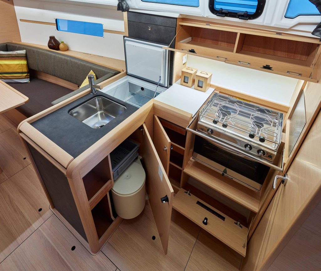 | Safety | Autopilot, Bordapotheke, elektr. Bilgepumpe, Feststoffschwimmwesten, Feuerlöscher, Nebelhorn, Notpinne, Notsignale, Rettungskragen, Taschenlampe, UKW-Funk, Zweitanker |
