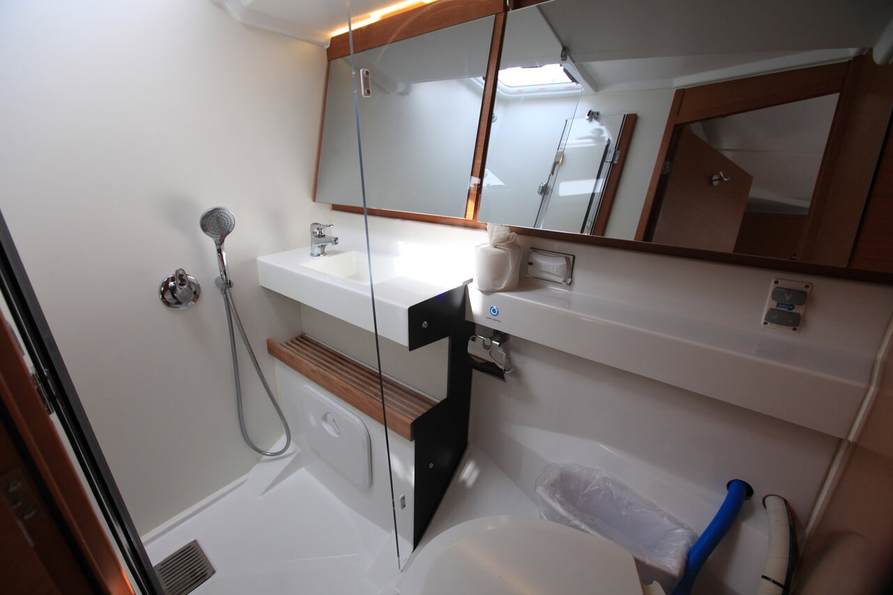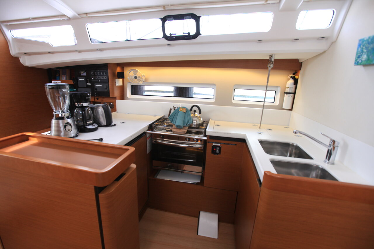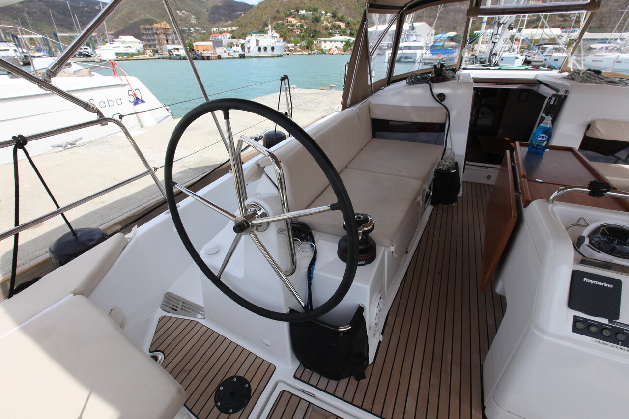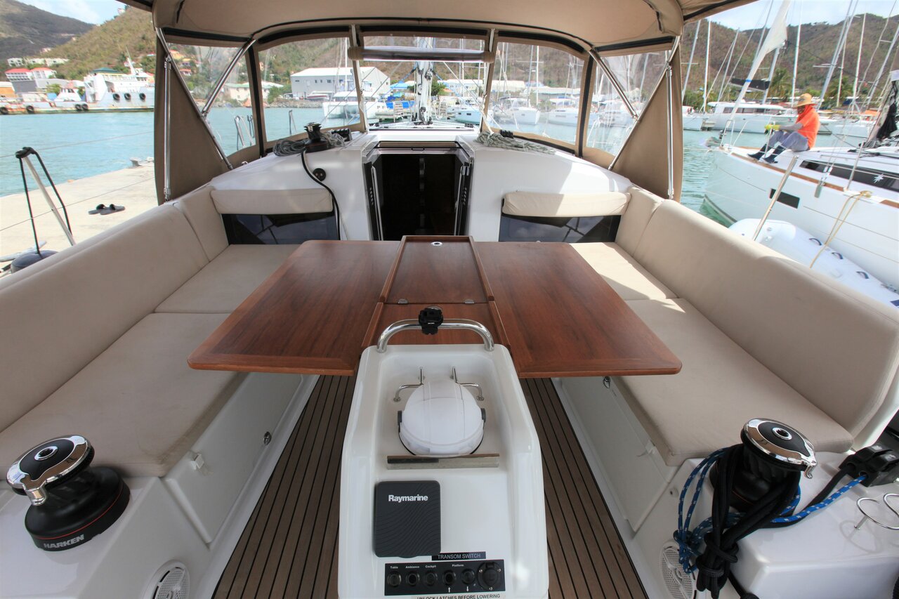 | Outside | Anker mit Kette, Biminitop, Bootshaken, Cockpitdusche, Cockpitkühlschrank, Cockpitleuchte, Cockpitpolster, Cockpittisch, Deckbürste, elektr. Ankerwinsch, Fender, Grill, Teak im Cockpit, Winschen |