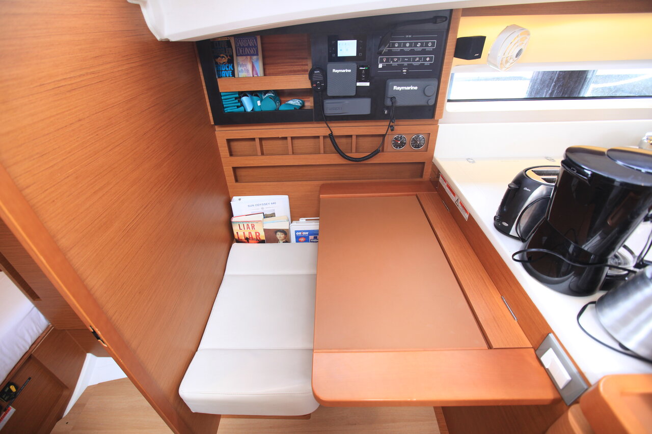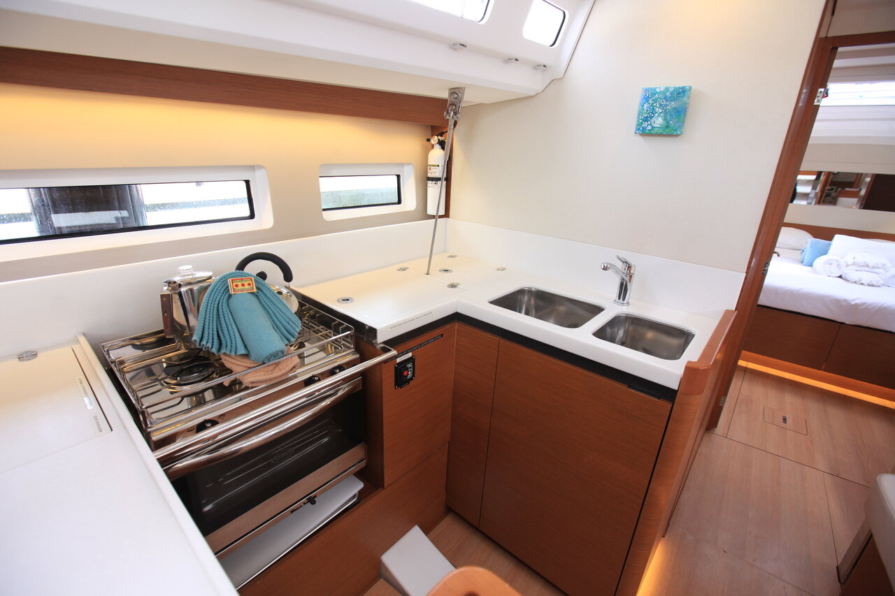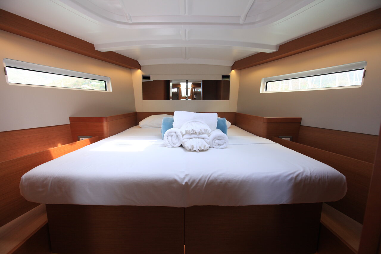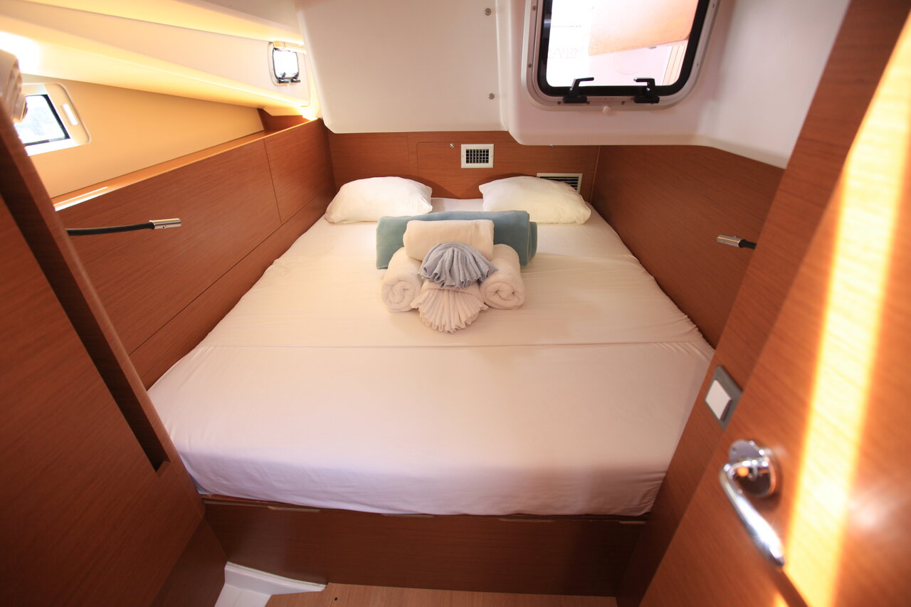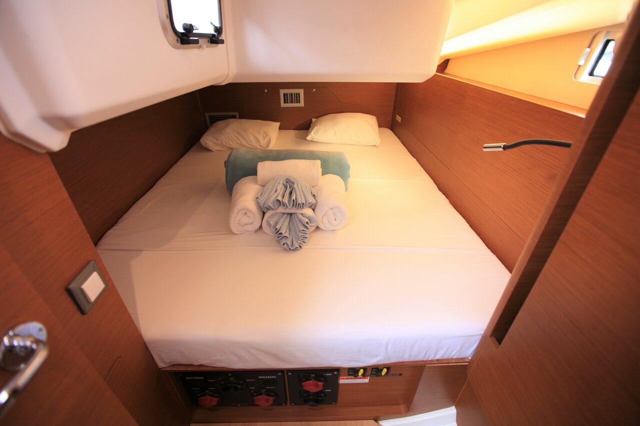 | Outside | Anker mit Kette, Biminitop, Bootshaken, Cockpitdusche, Cockpitkühlschrank, Cockpitleuchte, Cockpitpolster, Cockpittisch, Deckbürste, elektr. Ankerwinsch, Fender, Grill, Teak im Cockpit, Winschen |