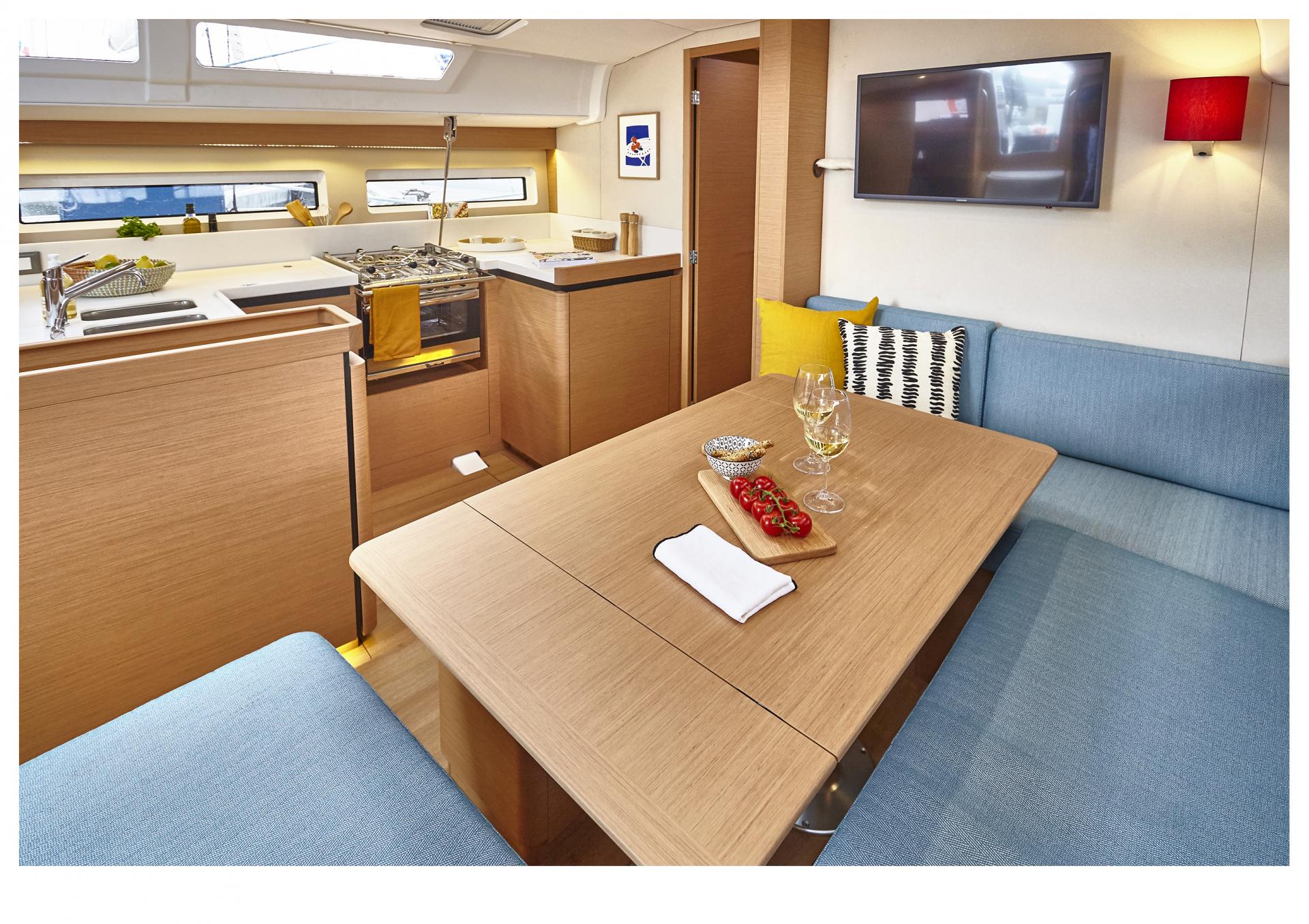 | Outside | 220 V-Landanschluss, Anker mit Kette, Badeleiter, Biminitop, Cockpitdusche, Cockpitlautsprecher, Cockpitpolster, Cockpittisch, elektr. Ankerwinsch, elektr. Winsch, Grill, Sprayhood |