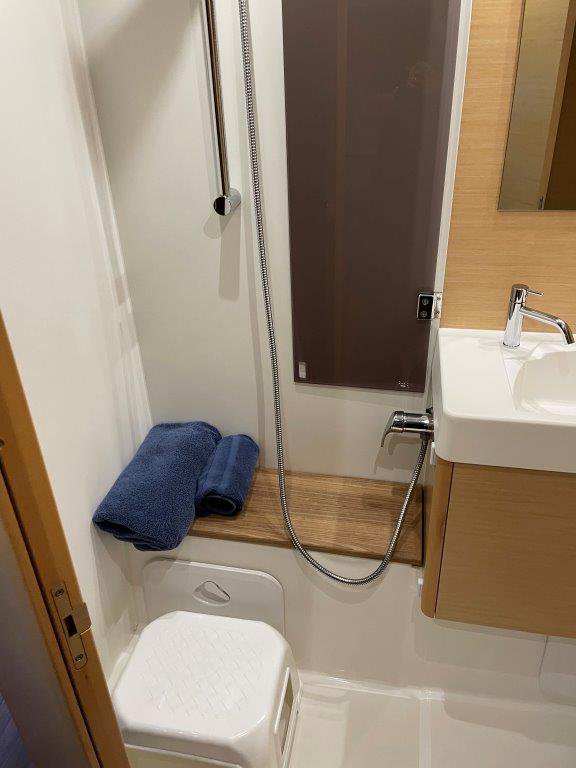 | Outside | Biminitop, Cockpitdusche, elektr. Ankerwinsch, elektr. Winsch, Faltpropeller, Grill |