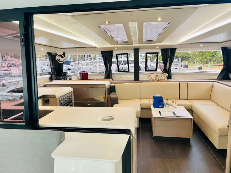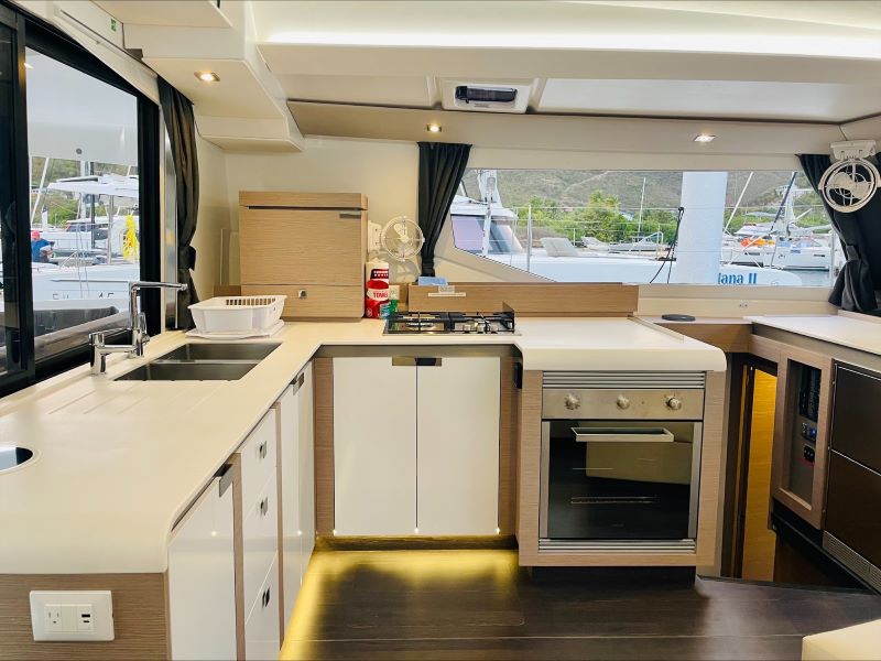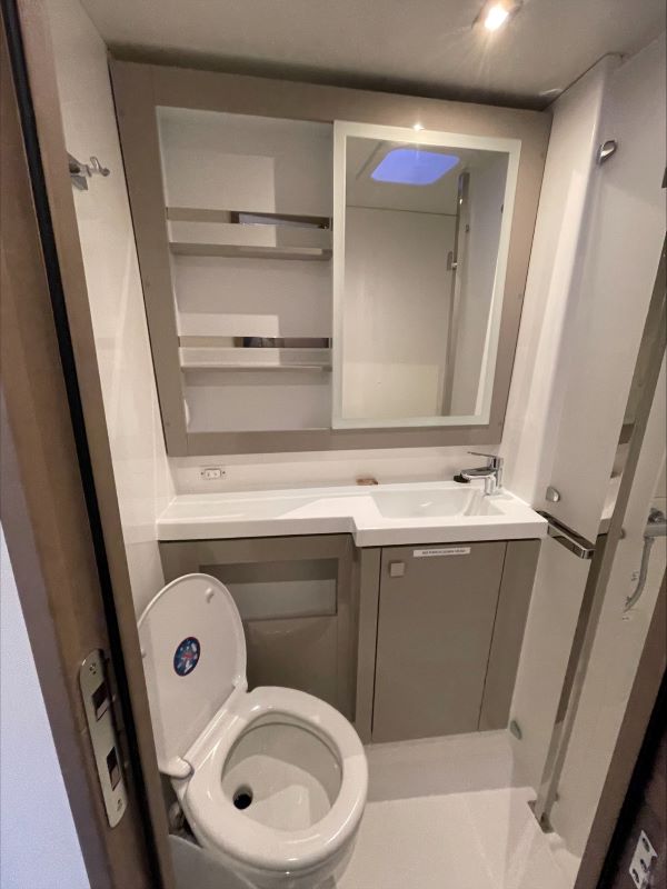 | Inside | 110 V Steckdose, Eiswürfelmaschine, Fäkalientank, Gasherd, Gefrierschrank, Generator, Inverter 12V/220V, Klimaanlage (ohne Landstrombedarf), Kühlbox, Kühlschrank, Lautsprecher im Salon, Mikrowelle, Pantryausstattung, Radio, TV, USB Steckdose, Watermaker, WC (elektr.) |