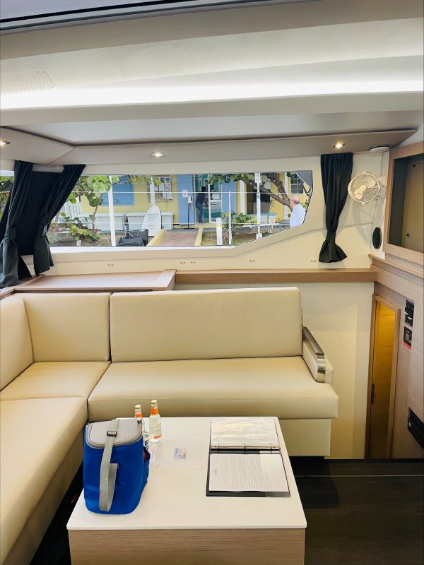 | Outside | Badeplattform, Biminitop, Cockpitdusche, Cockpitkühlschrank, Cockpitlautsprecher, Cockpittisch, Davits, Deckpolster, elektr. Ankerwinsch, elektr. Winsch, Grill, Solaranlage, Sprayhood, Unterwasserbeleuchtung |