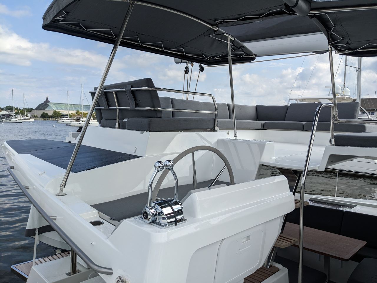 | Outside | Badeplattform, Biminitop, Cockpitkühlschrank, Cockpitlautsprecher, Cockpittisch, Deckpolster, elektr. Ankerwinsch, elektr. Winsch, Grill |