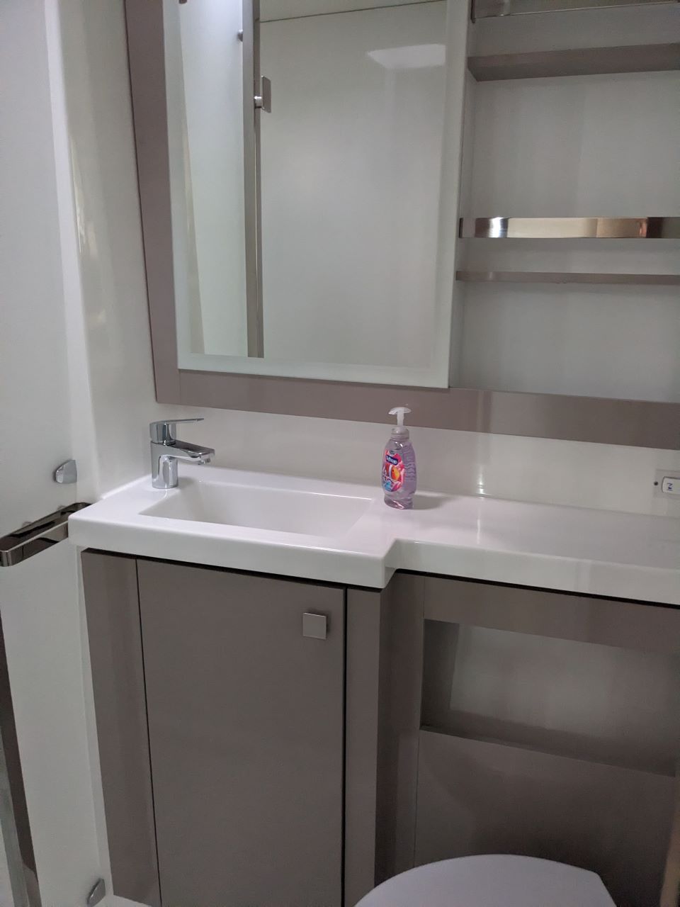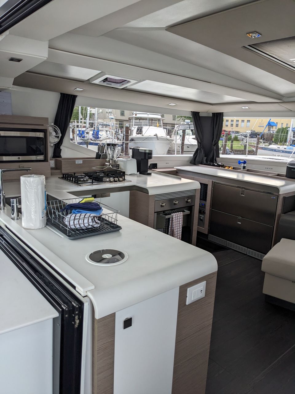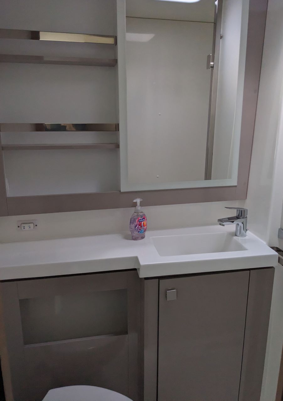 | Inside | 110 V Steckdose, Backofen, Fäkalientank, Gasherd, Generator, Inverter 12V/220V, Klimaanlage (ohne Landstrombedarf), Kühlschrank, Mikrowelle, Pantryausstattung, Radio, Salontisch absenkbar, TV, Watermaker, WC (elektr.) |