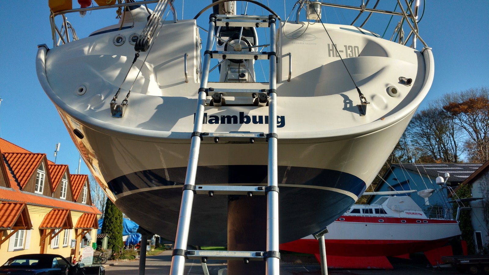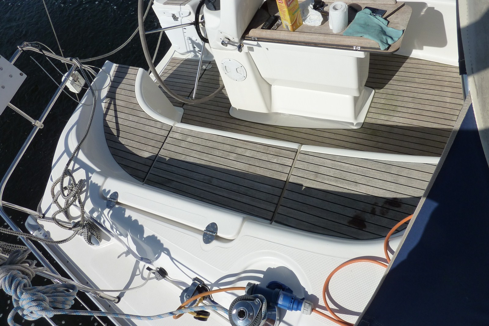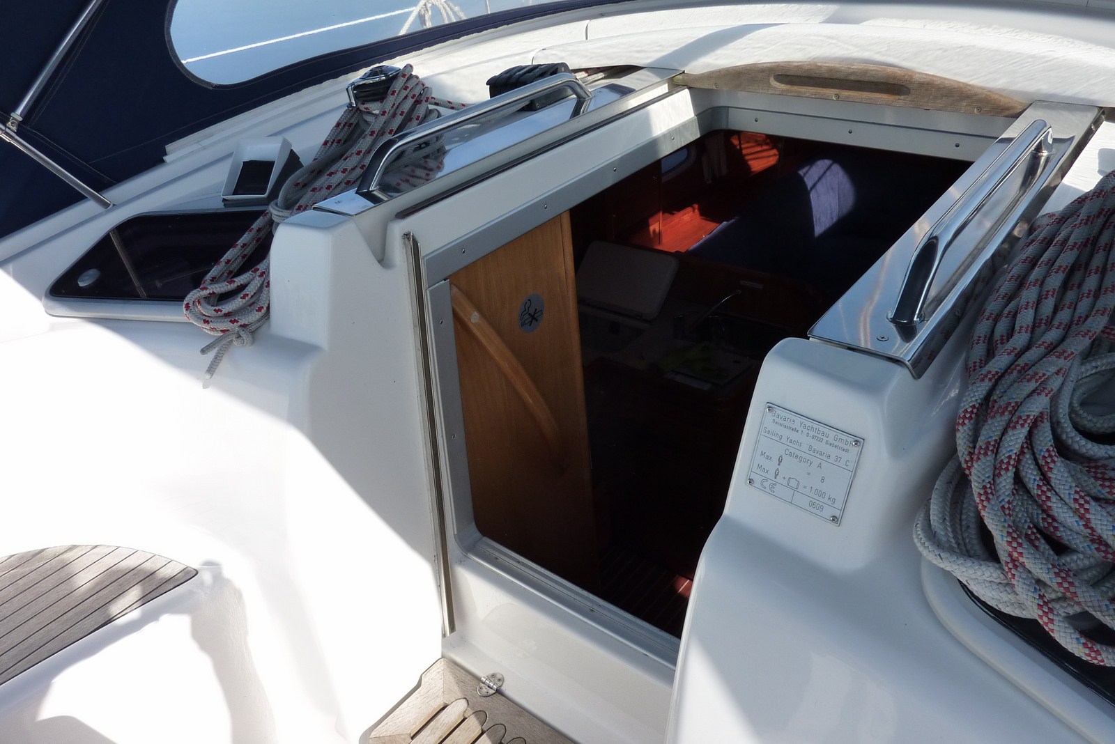 | Outside | Anker mit Kette, Außendusche, Badeleiter, Bootshaken, Cockpittisch, Fender, Festmacherleinen, Seereling, Sprayhood, Windex, Winschen |