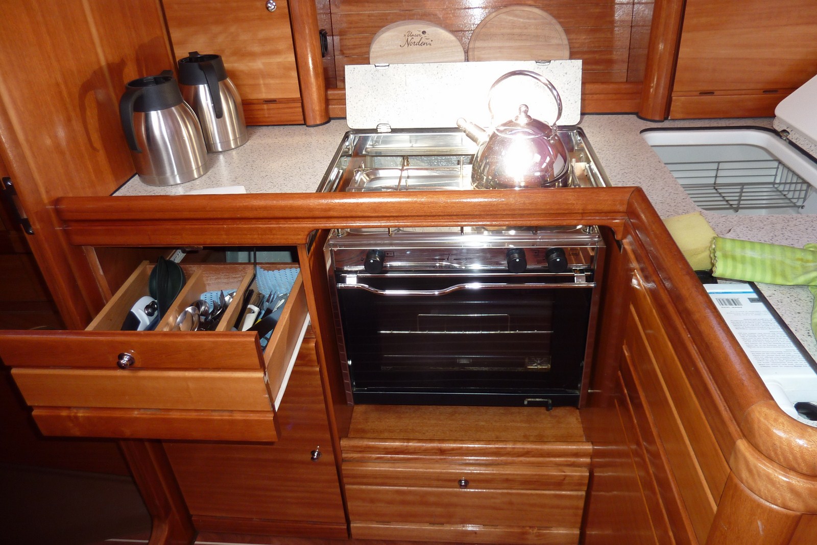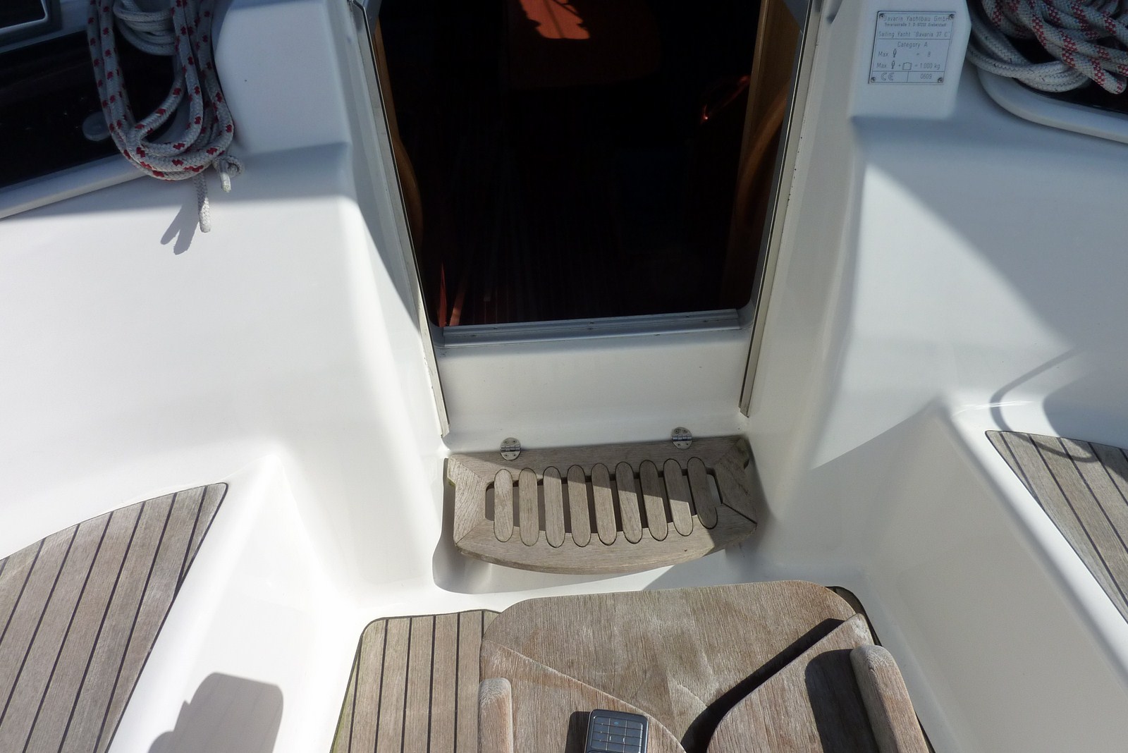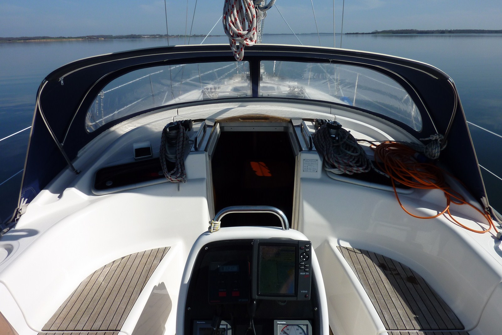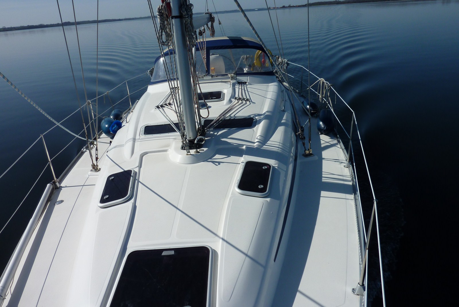 | Outside | Anker mit Kette, Außendusche, Badeleiter, Bootshaken, Cockpittisch, Fender, Festmacherleinen, Seereling, Sprayhood, Windex, Winschen |