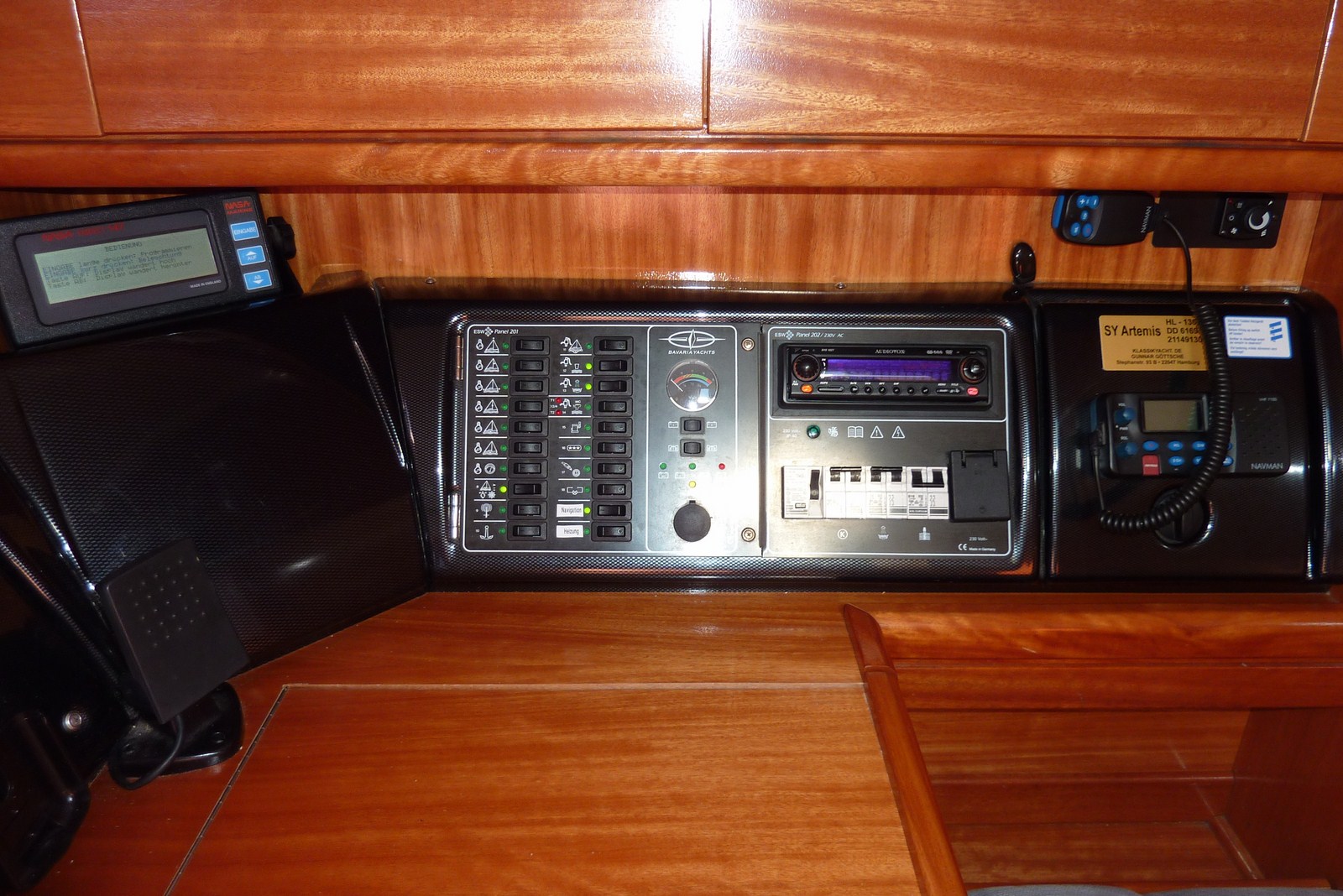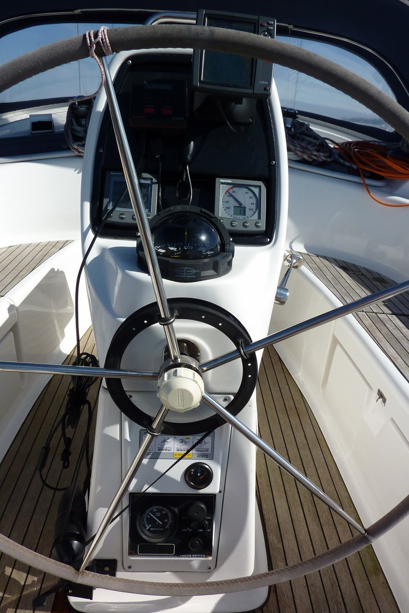 | Navigation | Barometer, Echolot, Fernglas, GPS, Hafenhandbücher, Kartenplotter im Cockpit, Seekarten, Steuerkompass, Sumlog, Windmesser |