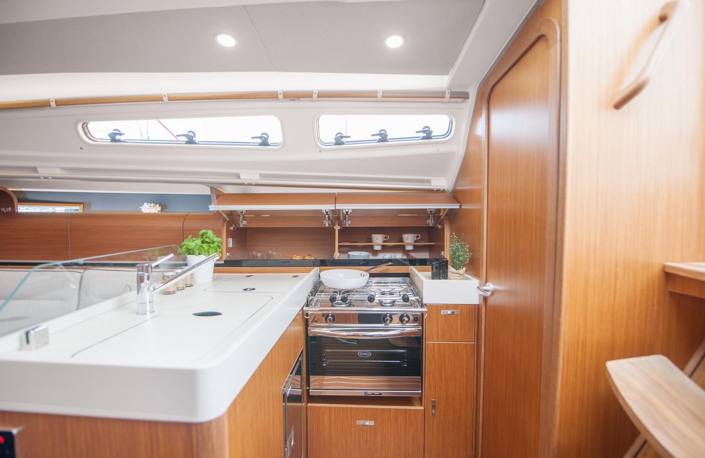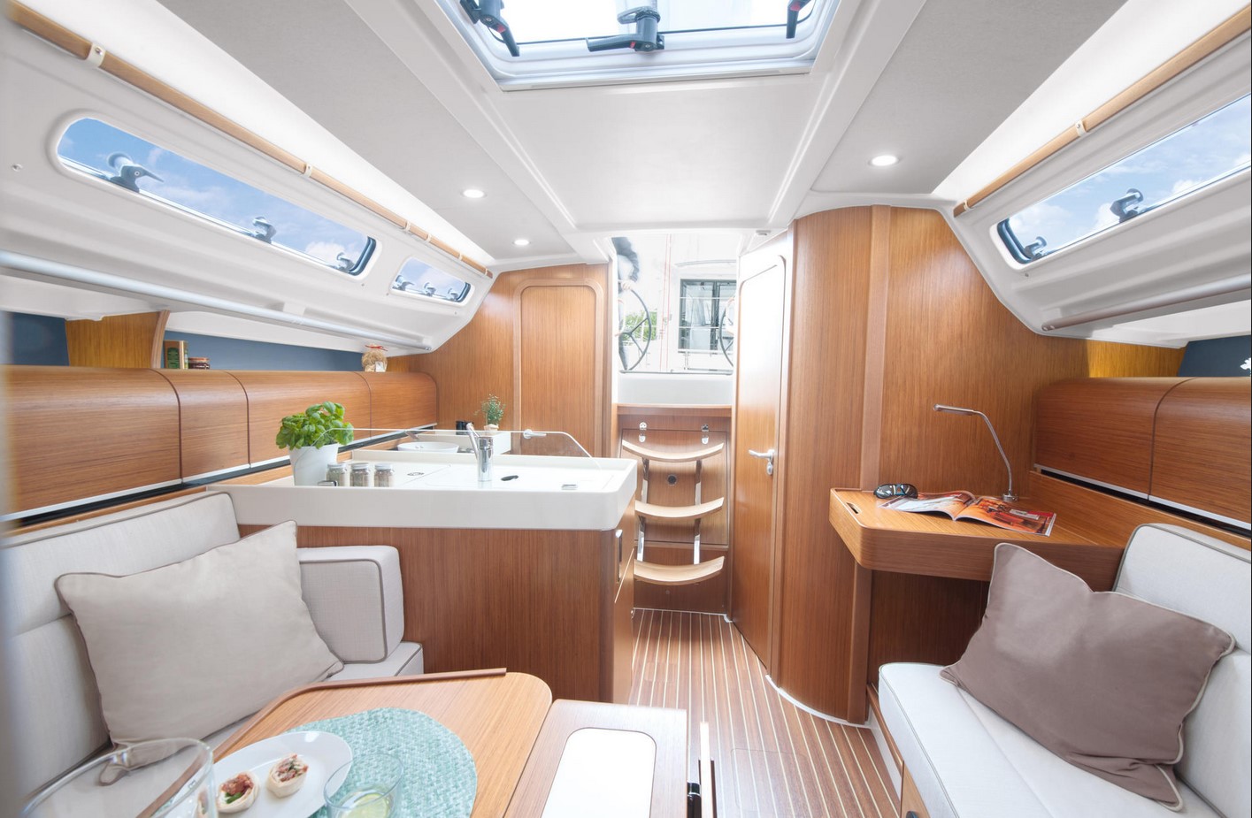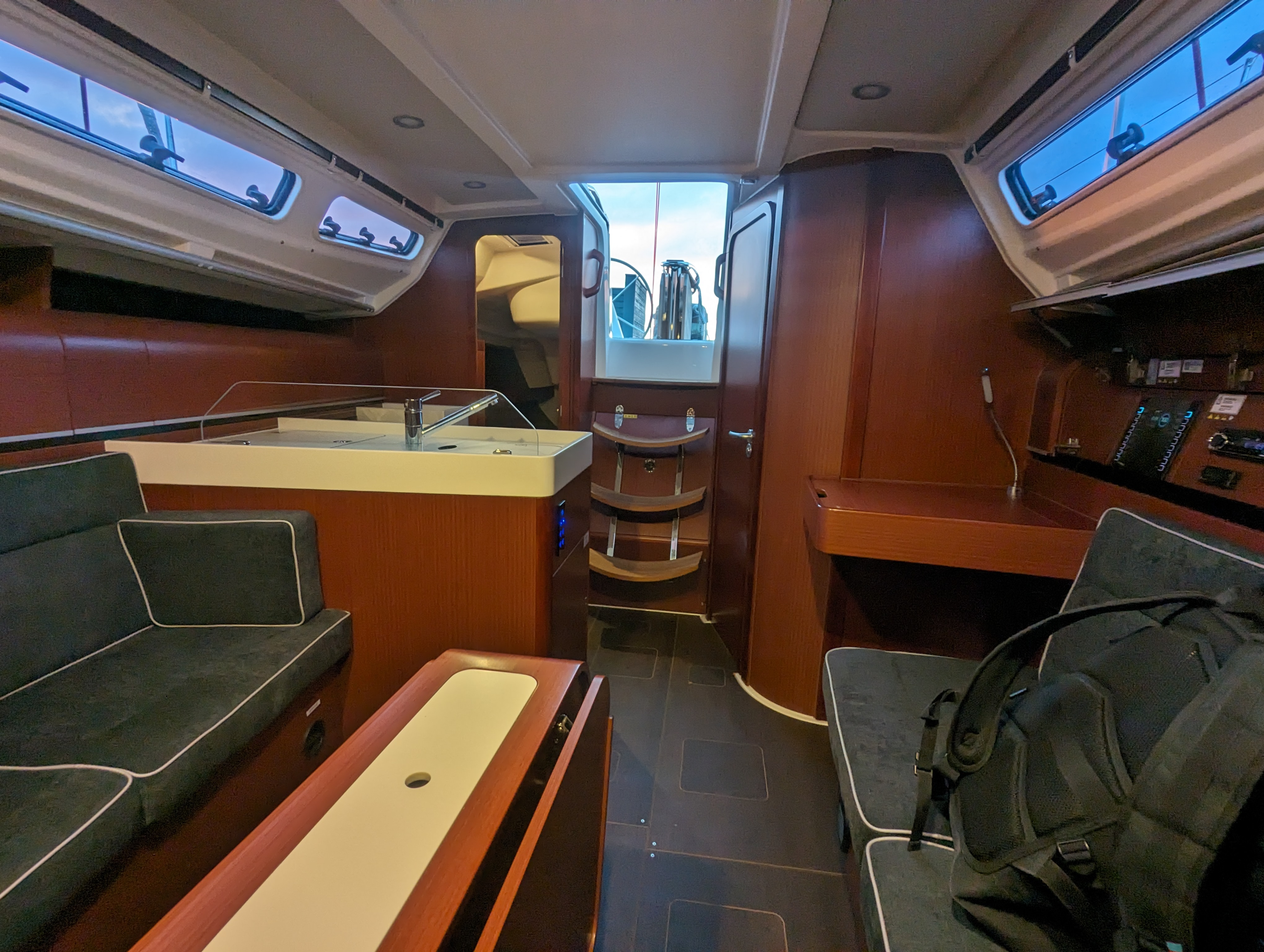 | Outside | 220 V-Landanschluss, Bootshaken, CQR-Anker, elektr. Ankerwinsch, Fallwinschen, selbstholend, Fender, Festmacherleinen, Genuawinschen, selbstholend, Heckanker, Windex |