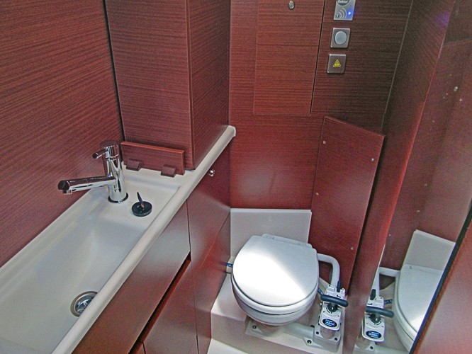 Die Übergabe war kurz und auf das Wesentliche bestimmt: Nachfragen wurden beantwortet, für alles Übrige galt "nachzulesen im Handbuch". Im Inneren war das Boot sauber (mal abgesehen von Schubladen und Töpfen), es roch aber stark nach Chemie. Im Nachhinein denke ich, der Geruch des Fäkalientanks sollte überblendet werden, denn der war - wie sich rausstellte - nicht ok: bei geschlossenem das Druckventil (wurde von uns dann ausgebaut und gereinigt) wurde die "Flüssigkeit" aus dem Tank zwischen Schlauch und Schlauchanschlüssen rausgepumpt. Das war nach der Ventilreinigung besser aber nicht komplett behoben, sodass wir das Ventil des Wate-Tanks praktisch immer geöffnet hatten - und die Naßzelle regelmäßig geduscht haben.