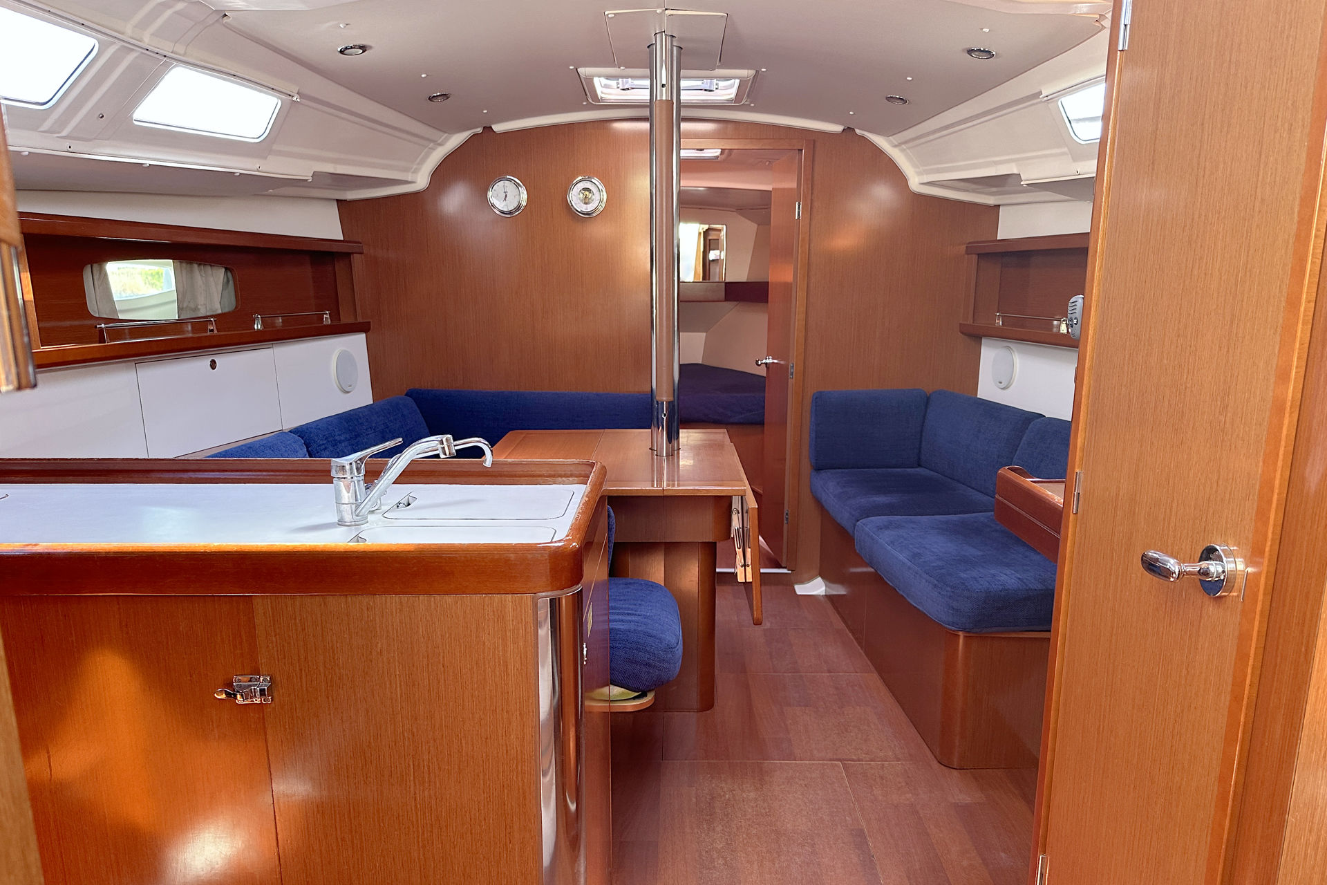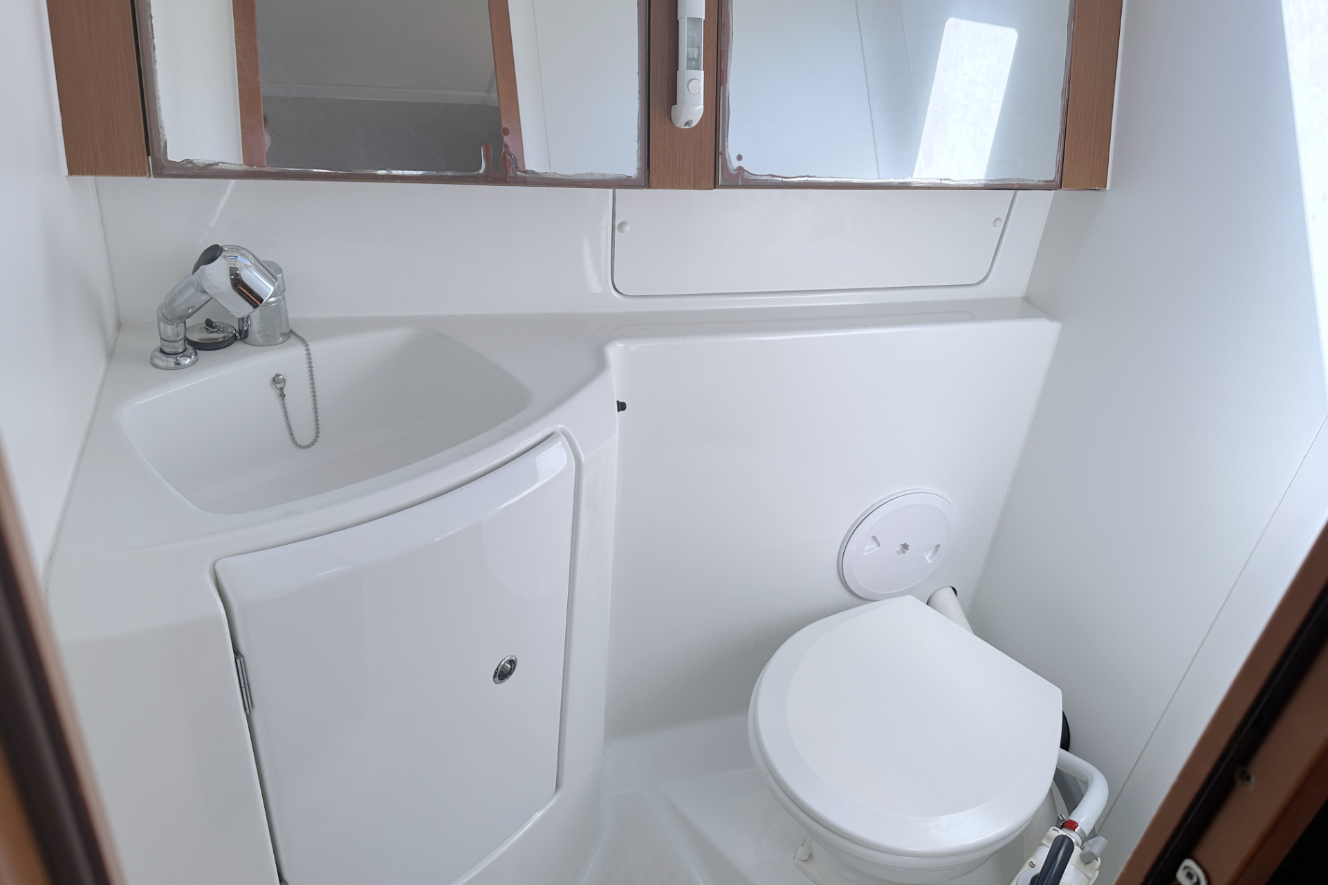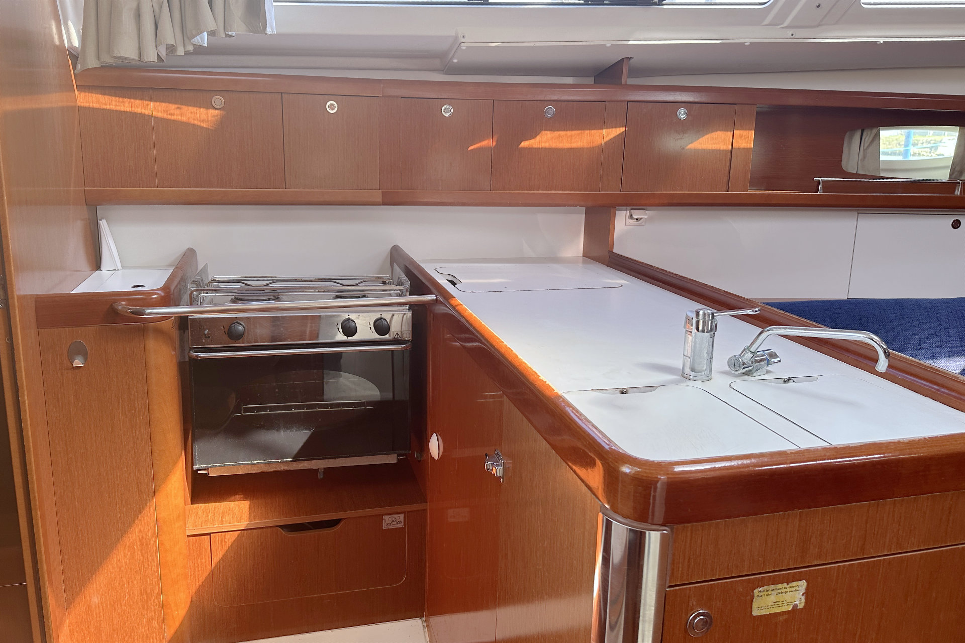 | Outside | 220 V-Landanschluss, Anker mit Kette, Badeleiter, Bootshaken, Bugkorb, Cockpittisch, Deckbürste, Fender, Festmacherleinen, Kugelfender, Seereling, Sprayhood, Wantenschneider |