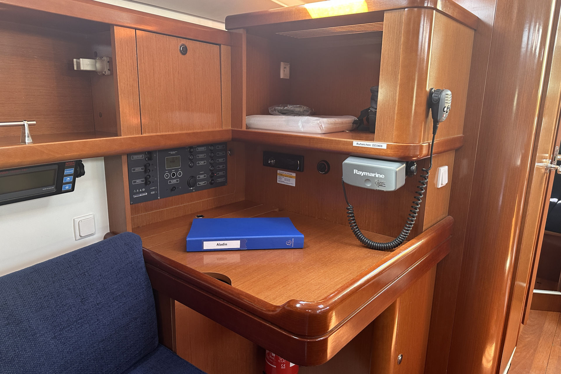 | Navigation | Barometer, Echolot, Fernglas, GPS mit Farbkartenplotter, Hafenhandbücher, Handpeilkompass, Kompass, Navigationsbesteck, Seekarten, Sumlog, Windmesser |