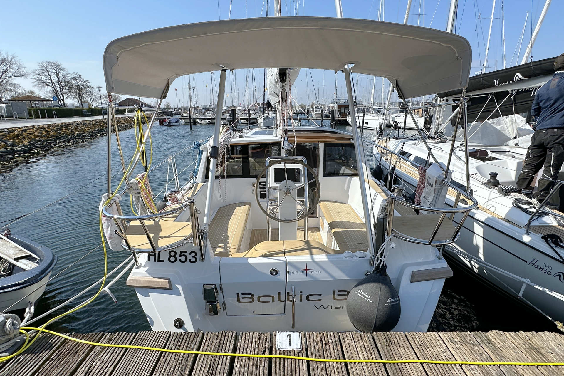 | Outside | Bootshaken, Bugspriet, Cockpitbeleuchtung, Cockpitdusche warm/kalt, Cockpitlautsprecher, Cockpittisch, Deckbürste, elektr. Ankerwinsch, Fender, Festmacherleinen, Solaranlage, Sprayhood, Teak im Cockpit |