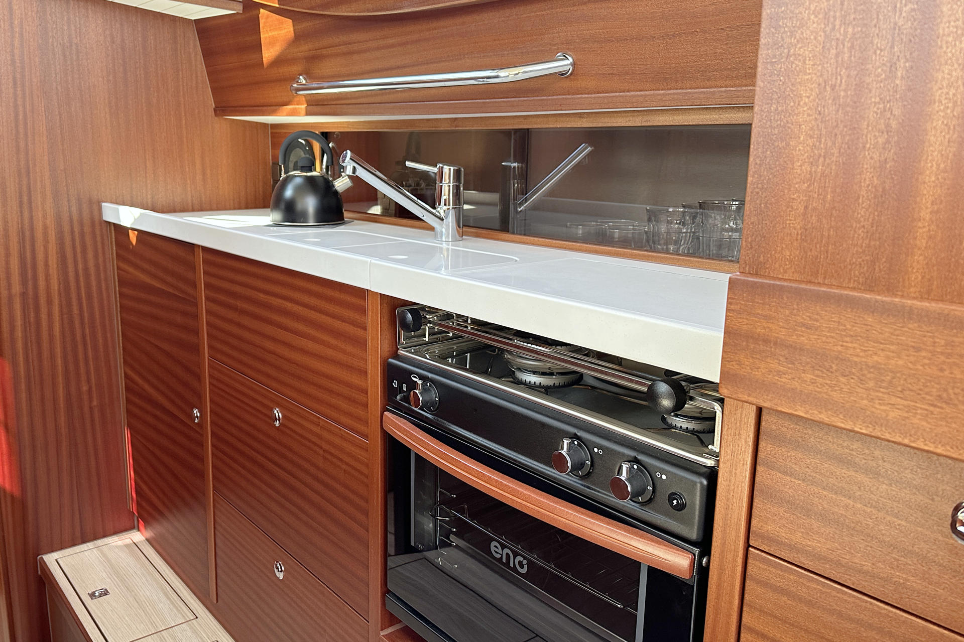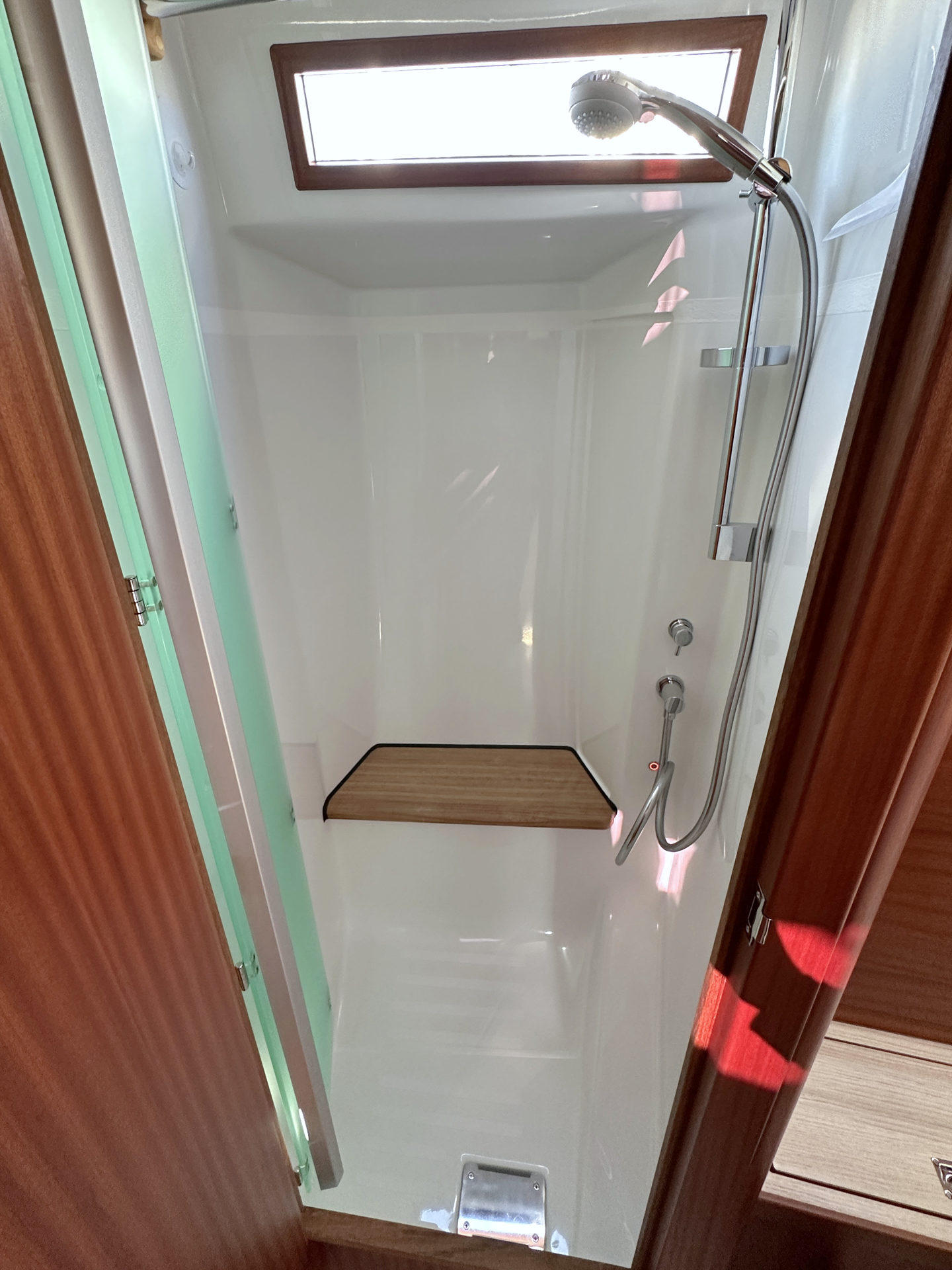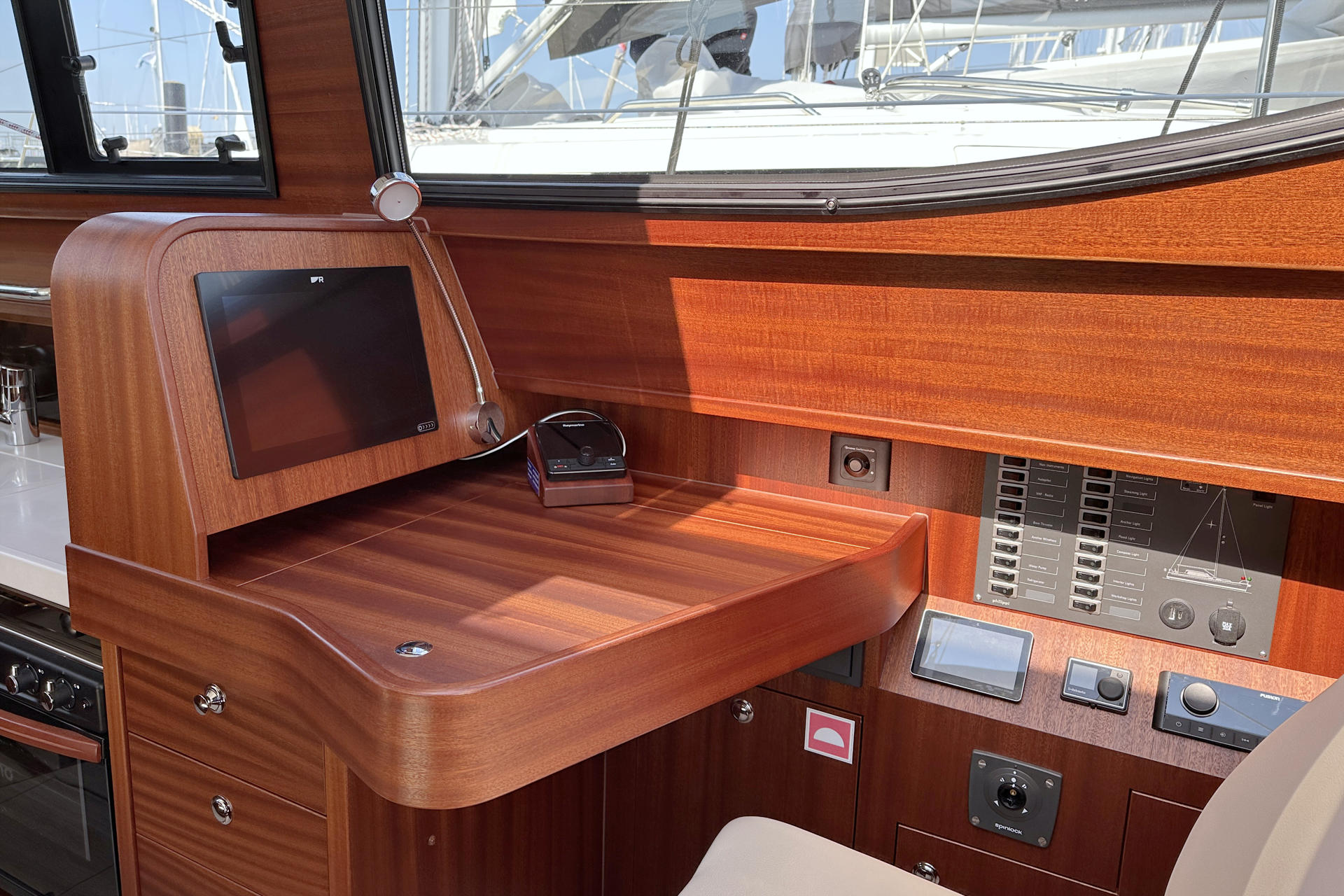| Safety | AIS Empfänger, AIS-Sender, Ankerball, Ankerlicht, Autopilot, Bilgepumpe, Bordwerkzeug, Bugstrahlruder, Feuerlöscher, Handscheinwerfer, Navigationslichter, Nebelhorn, Rettungsinsel, Schwimmleine, UKW-Funk |