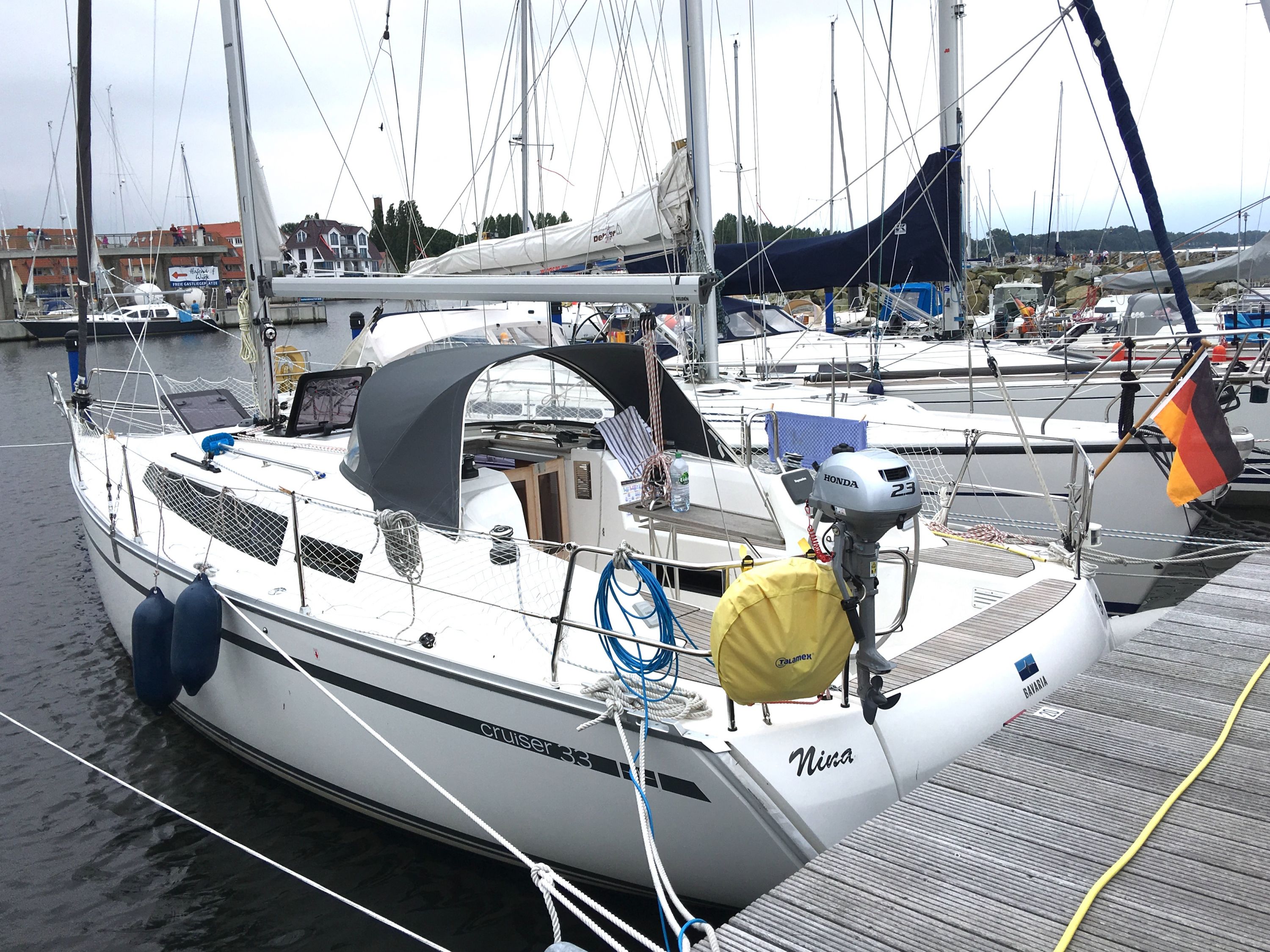 | Outside | 220 V-Landanschluss, Anker mit Kette, Bootshaken, elektr. Ankerwinsch (teilw.), Fender, Festmacherleinen, Heckanker, Sprayhood, Windex |