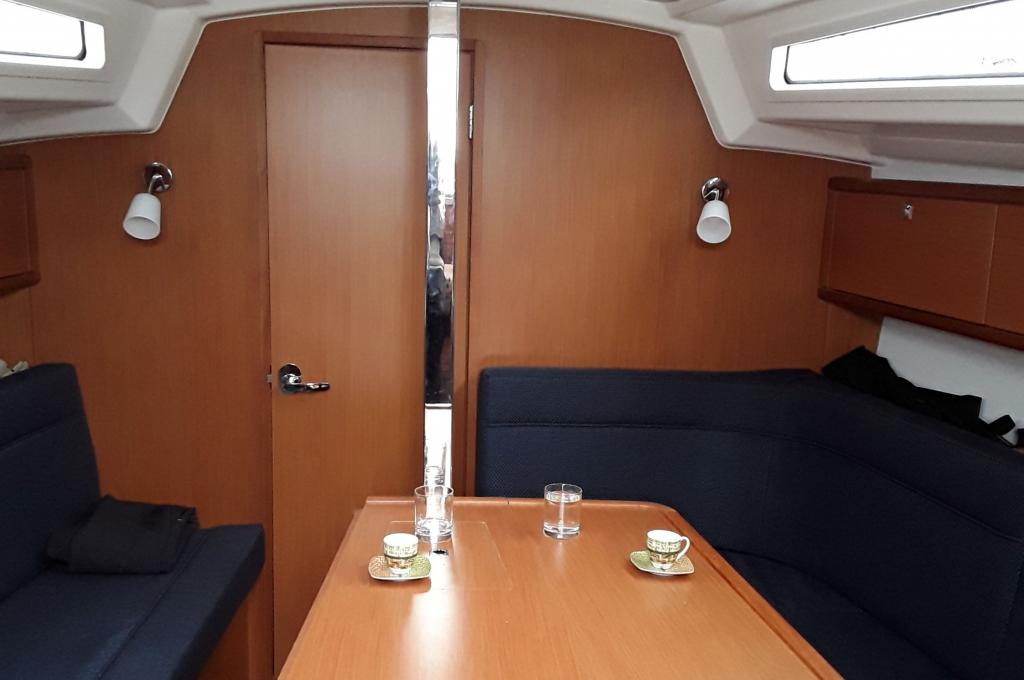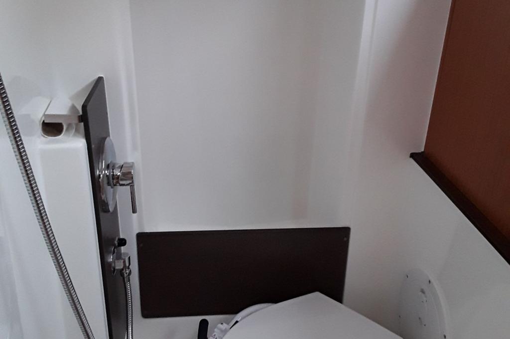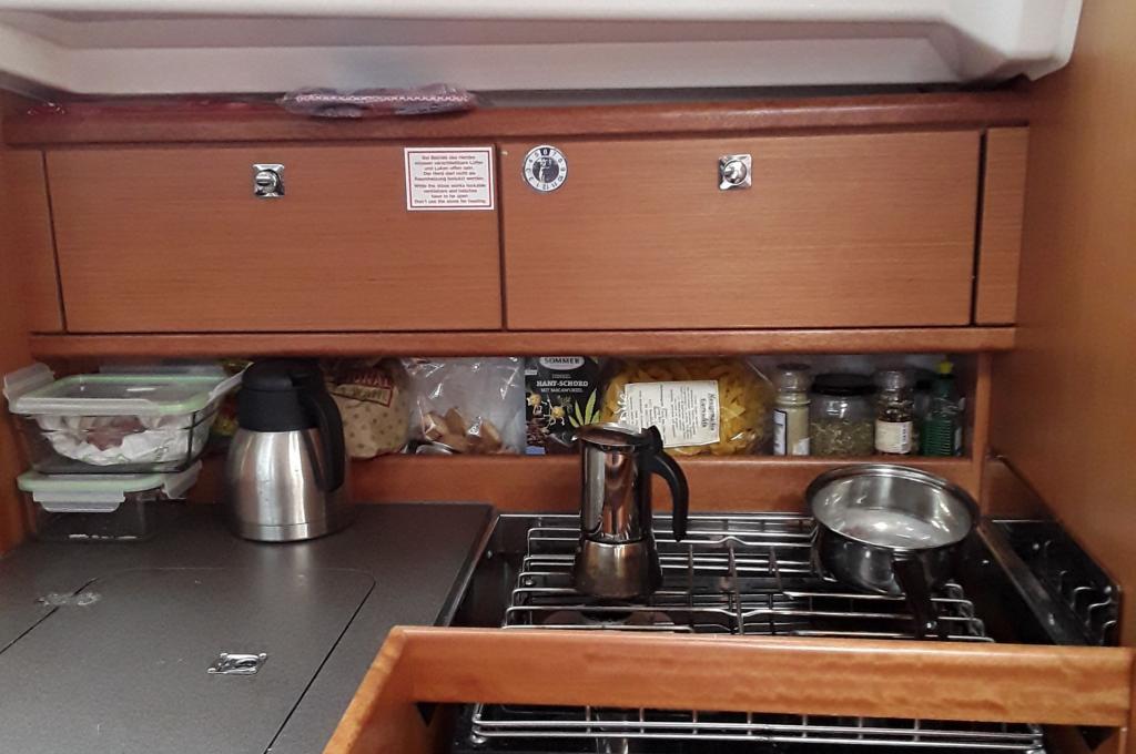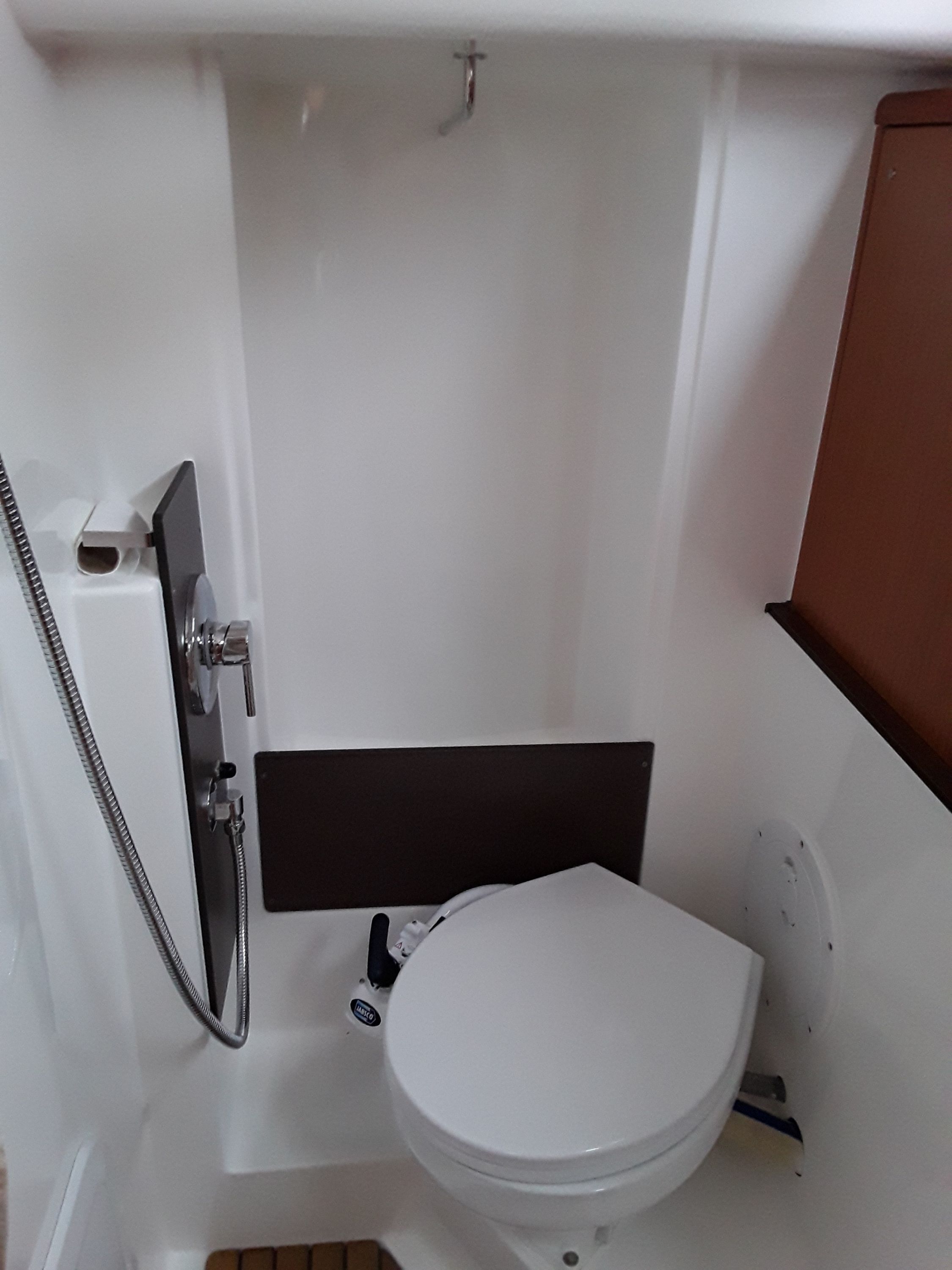 | Outside | 220 V-Landanschluss, Bootshaken, CQR-Anker, elektr. Ankerwinsch, Fender, Festmacherleinen, Heckanker, Sprayhood, Windex |