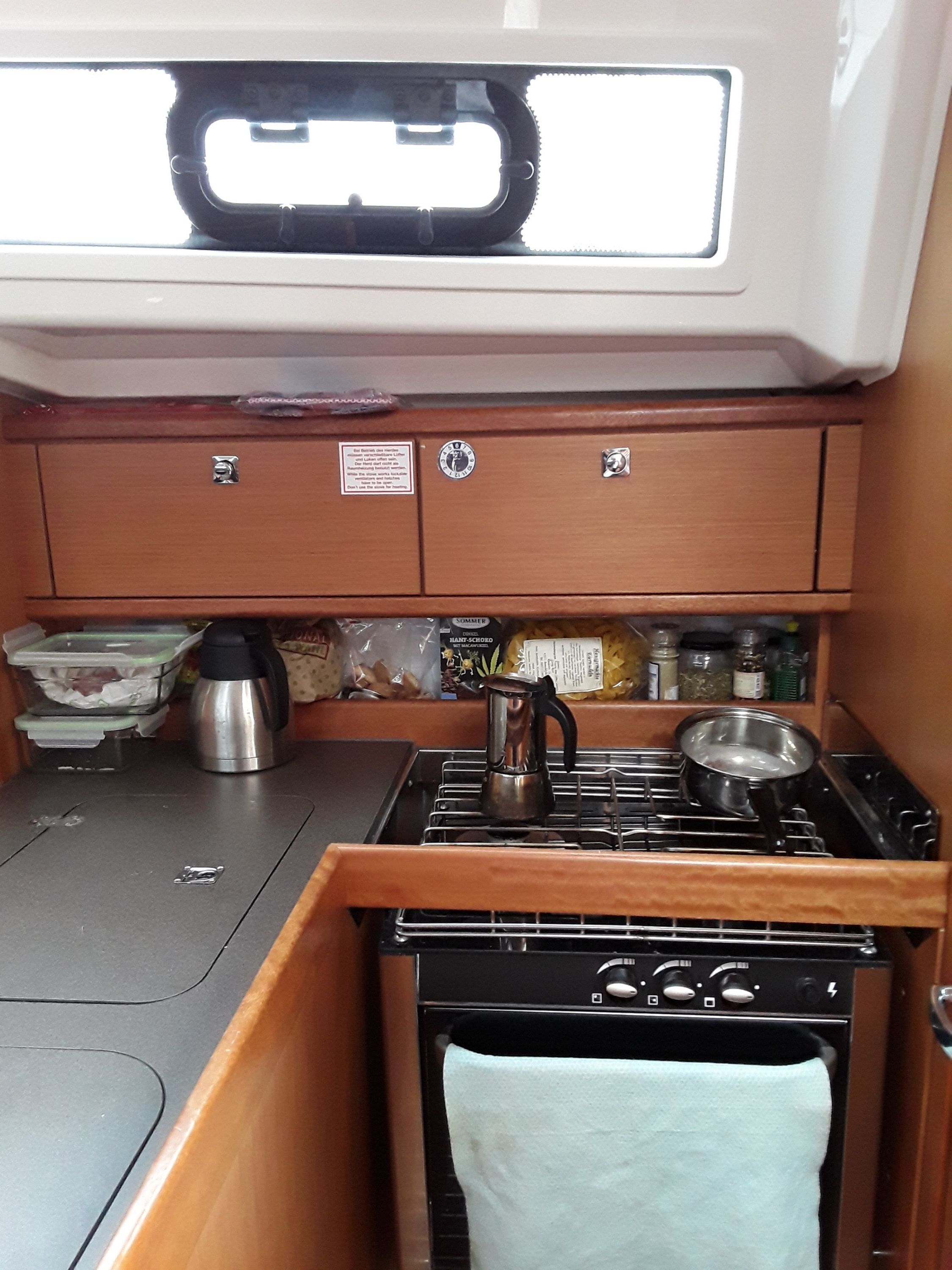 | Safety | AIS Empfänger, Automatikwesten, Autopilot, Bootsmannstuhl, Bordwerkzeug, Bugstrahlruder (teilw.), Feuerlöscher, Handbilgepumpe, Nebelhorn, Notsignale, Rettungsinsel, Taschenlampe, UKW-Funk m. DSC |