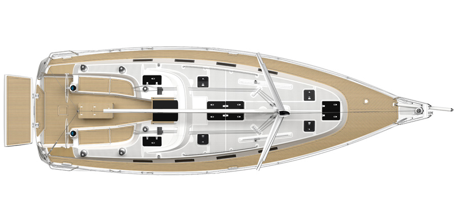 | Outside | 220 V-Landanschluss, Badeplattform, Bootshaken, CQR-Anker, elektr. Ankerwinsch, Fallwinschen, selbstholend, Fender, Festmacherleinen, Genuawinschen, selbstholend, Heckanker, Sprayhood, Windex |