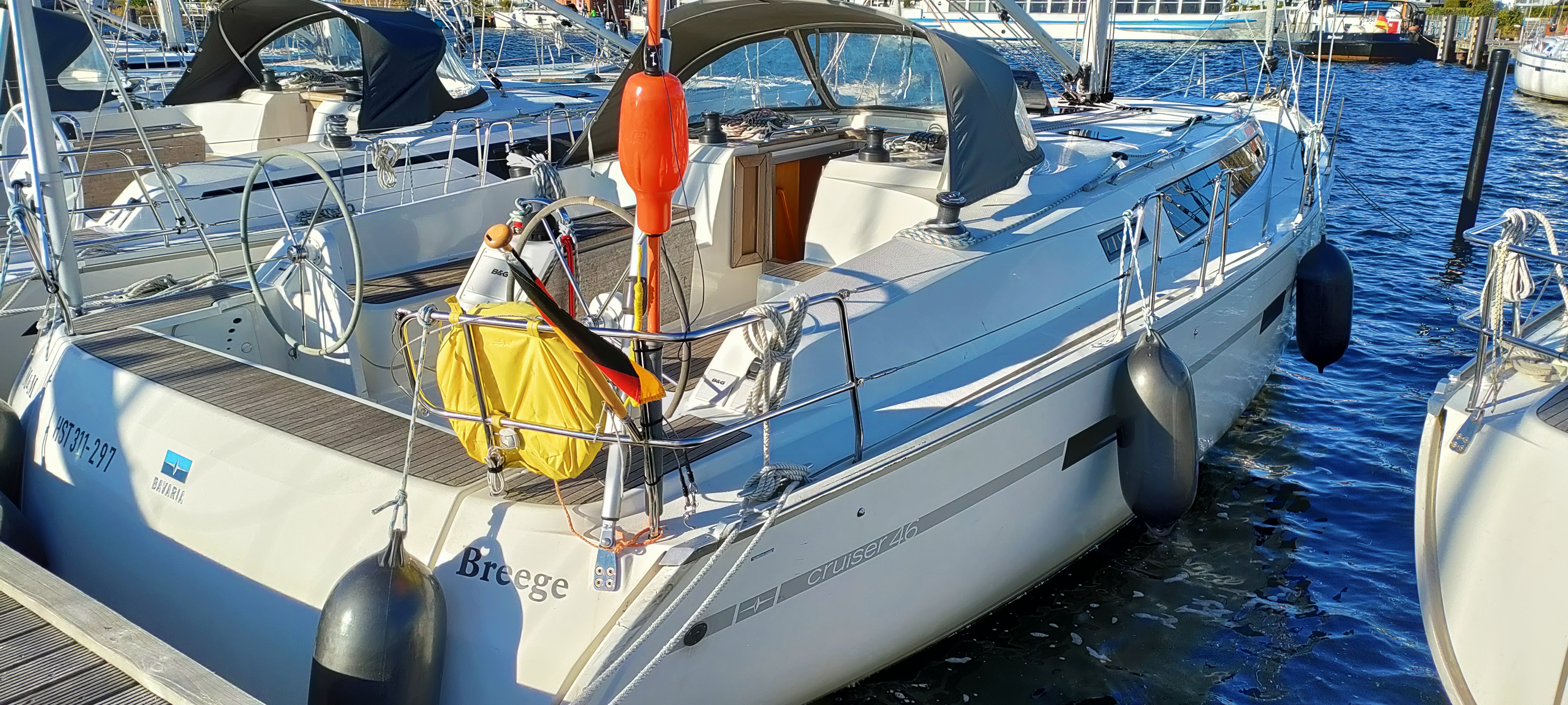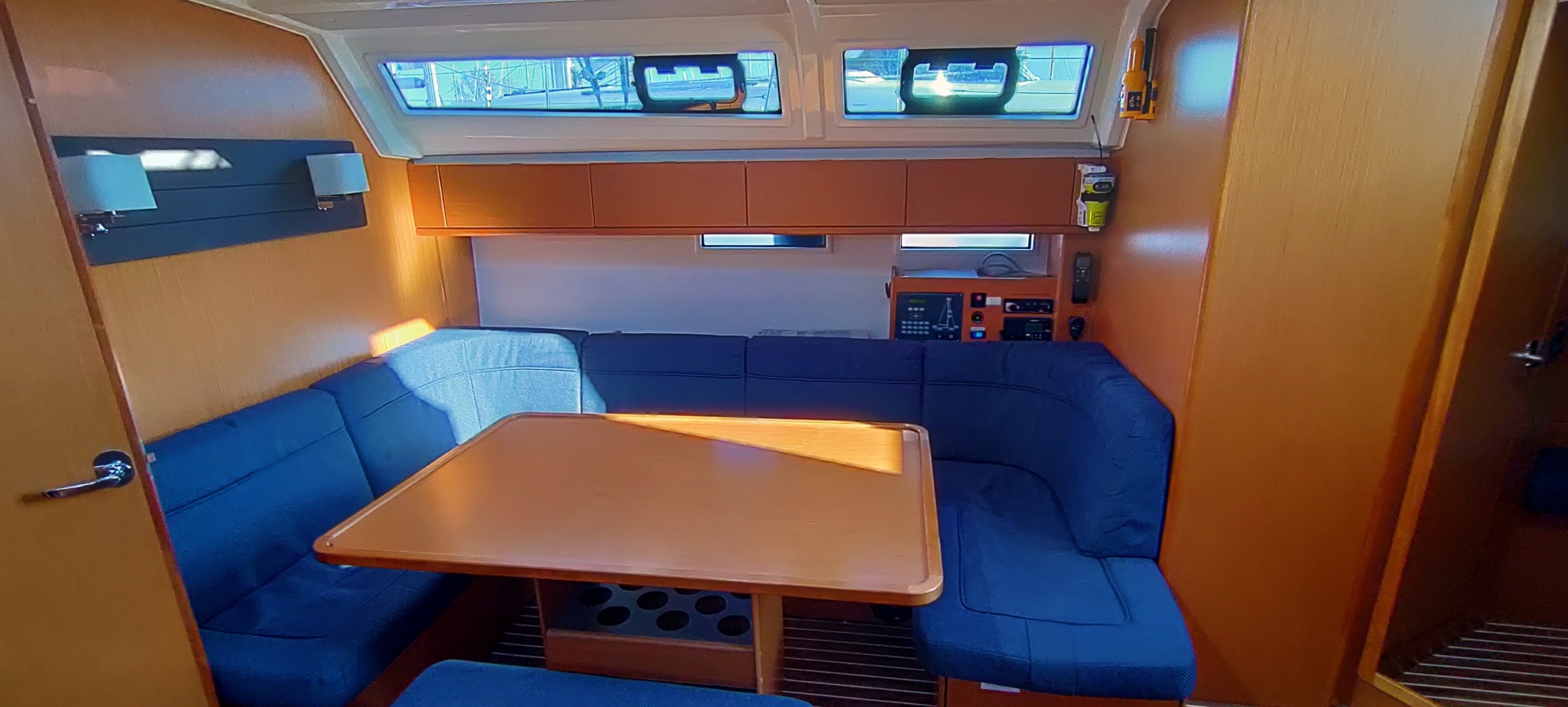 | Safety | AIS Empfänger (teilw.), Automatikwesten, Autopilot, Bootsmannstuhl, Bordwerkzeug, Bugstrahlruder (teilw.), elektr. Bilgepumpe, Feuerlöscher, Handbilgepumpe, Nebelhorn, Notsignale, Rettungsinsel, Rettungsring, Rettungssystem "M.O.B.", Taschenlampe, UKW-Funk m. DSC |