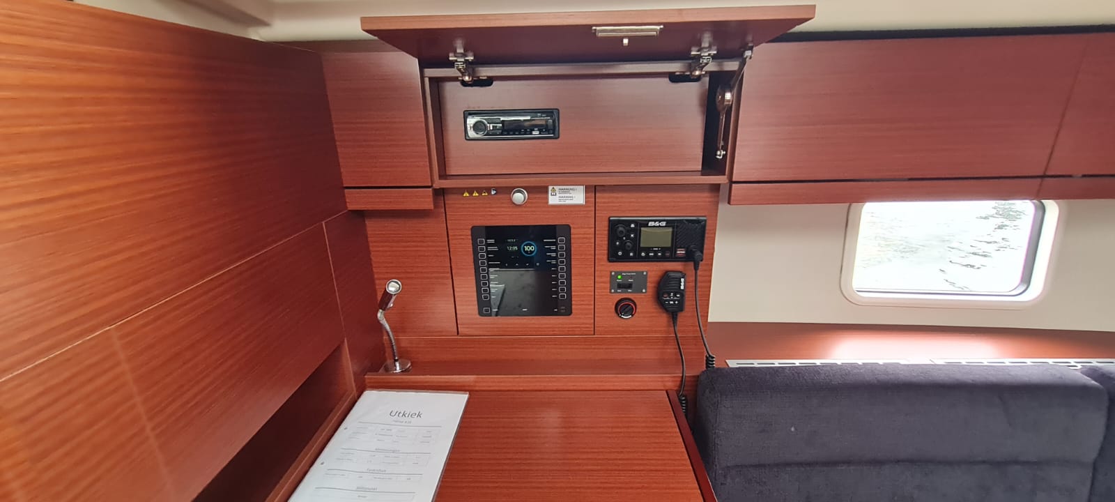 | Safety | AIS Empfänger, Automatikwesten, Autopilot, Bootsmannstuhl, Bordwerkzeug, Bugstrahlruder, elektr. Bilgepumpe, Feuerlöscher, Handbilgepumpe, Nebelhorn, Notsignale, Rettungsinsel, Rettungsring, Taschenlampe, UKW-Funk m. DSC |
