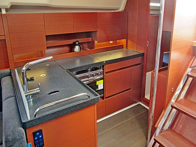 | Safety | AIS Empfänger, Automatikwesten, Autopilot, Bootsmannstuhl, Bordwerkzeug, Bugstrahlruder, elektr. Bilgepumpe, Feuerlöscher, Handbilgepumpe, Nebelhorn, Notsignale, Rettungsinsel, Rettungsring, Taschenlampe, UKW-Funk m. DSC |