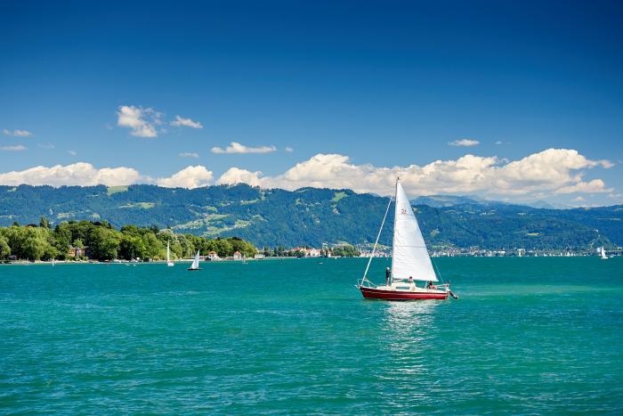 Wem zwei Länder nicht genug sind, der bewegt sich auf dem Bodensee im gleich Drei-Länder-Eck. Mit seiner großen Fläche und drei Seen bietet er viele Möglichkeiten, ruhige Plätze für sich zu finden und eine große Zahl an Sehenswürdigkeiten wie das Zeppelinmuseum in Friedrichshafen, Schlösser wie Meersburg oder Arenenberg oder die Blumeninsel Mainau. Dabei hat man das Alpenpanorama stets im Blick. Startpunkt ist Kressbronn nahe Lindau.