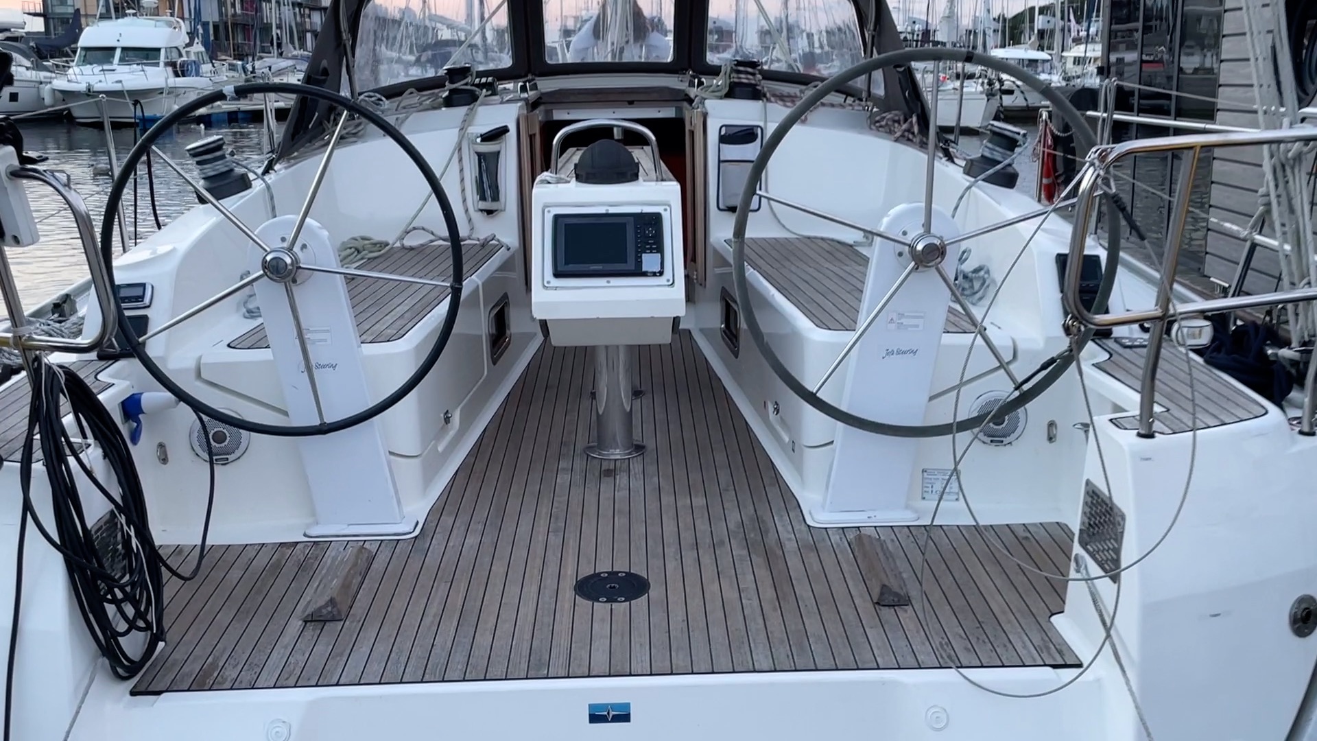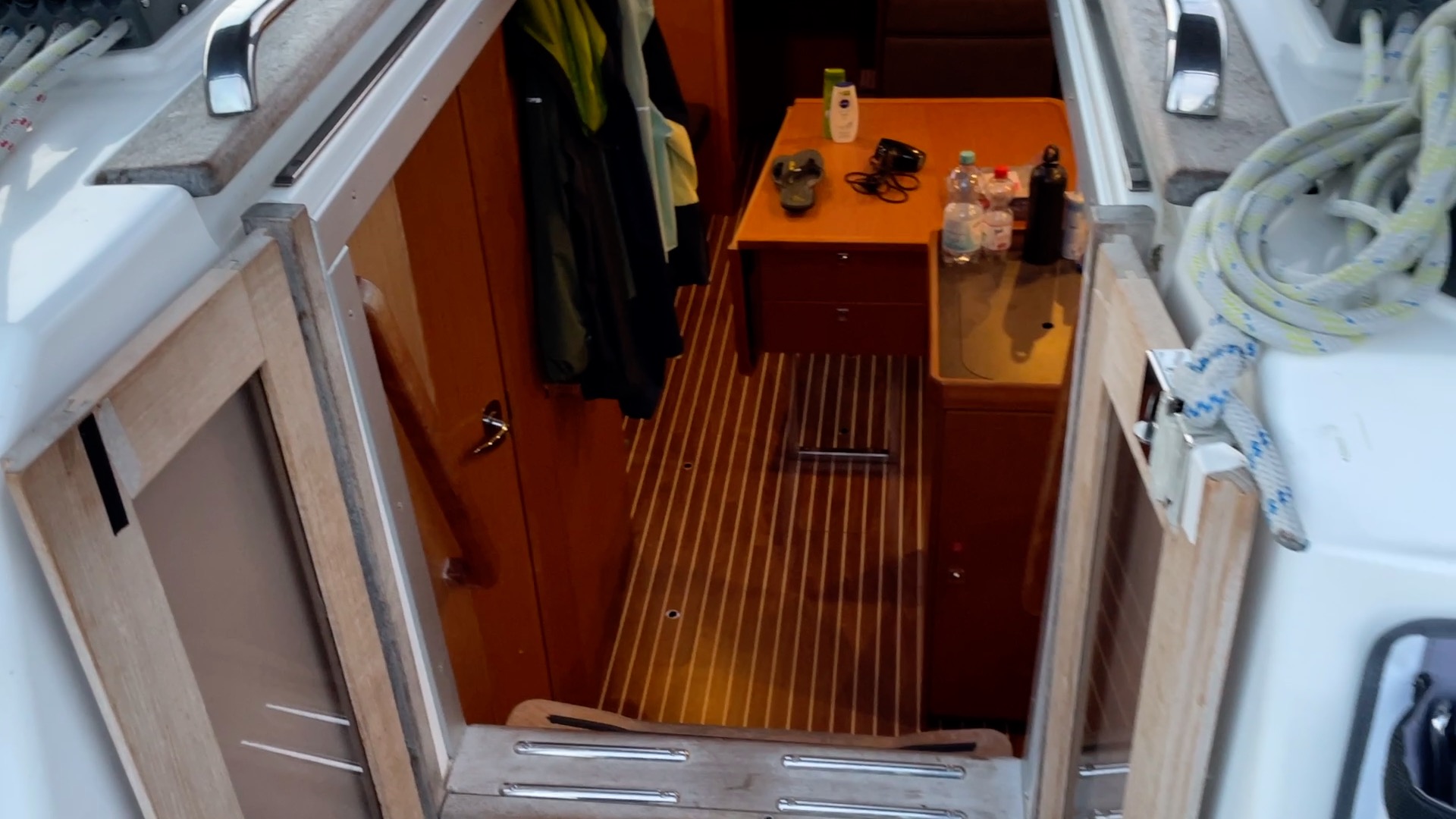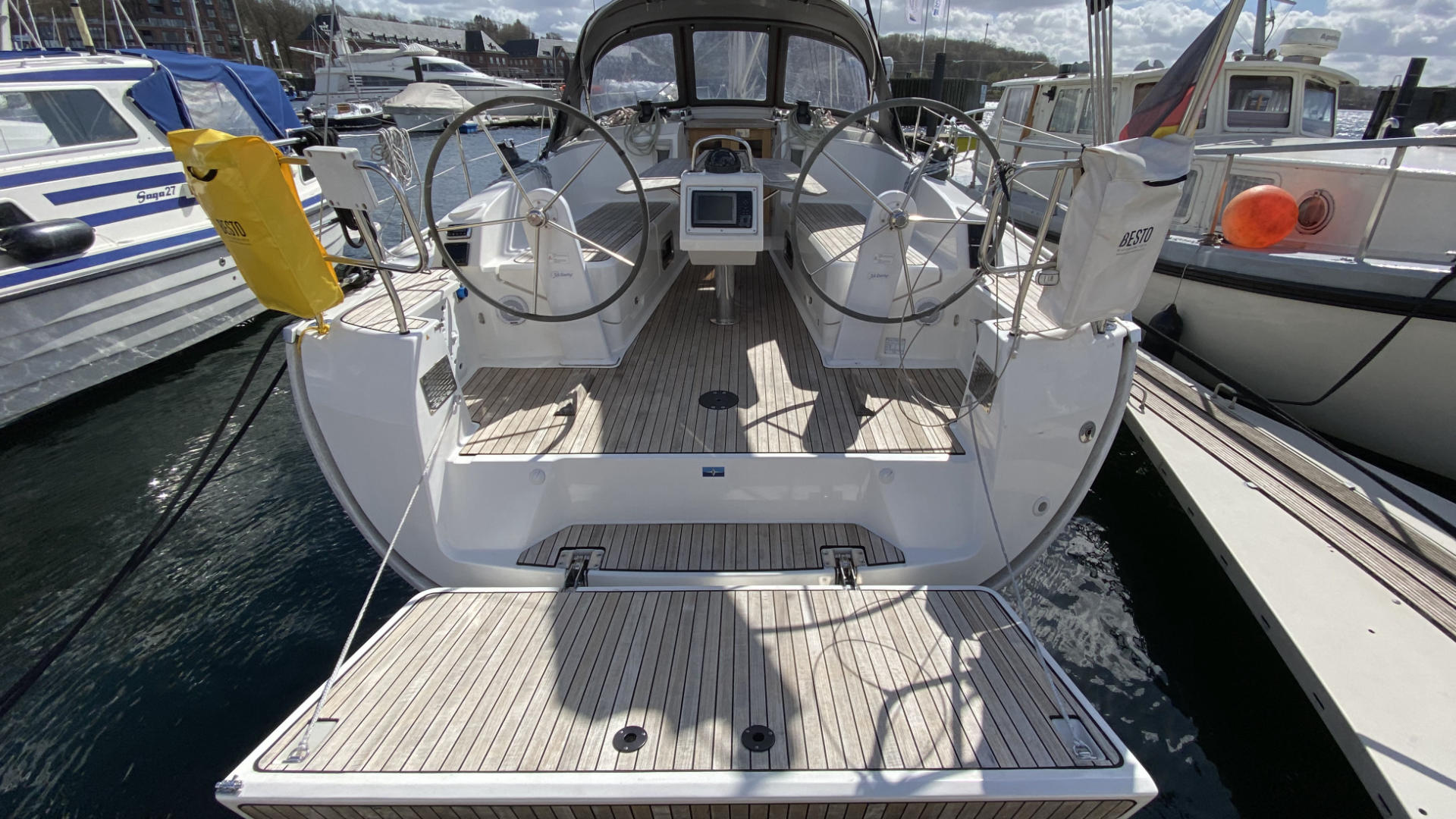 Outside 12 V-Anschluss, Bootshaken, Bugkorb, Cockpittisch, Deckbürste, elektr. Ankerwinsch, Faltpropeller, Fender, Festmacherleinen, Sprayhood, Wantenschneider