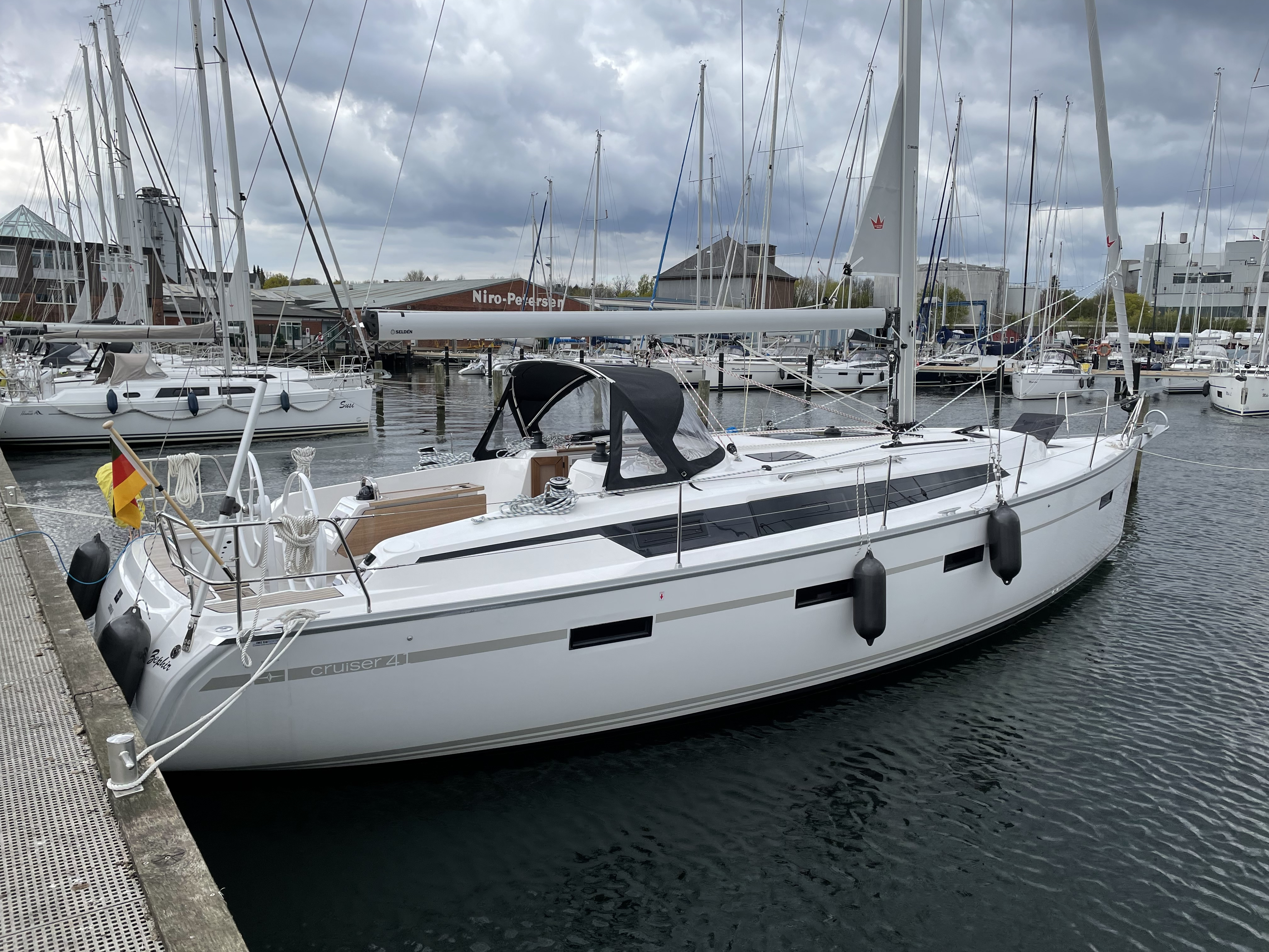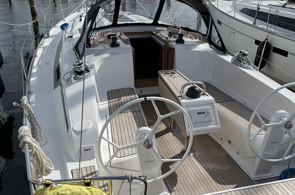| Outside | 220 V-Landanschluss, Bootshaken, CQR-Anker, elektr. Ankerwinsch, Fallwinschen, selbstholend, Fender, Festmacherleinen, Genuawinschen, selbstholend, Heckanker, Sprayhood, Windex |