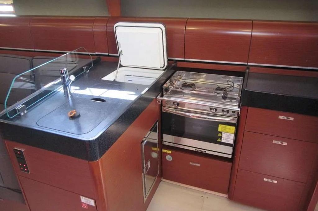 | Inside | Borduhr, elektrische Kühlbox, Gasherd mit Backofen, Heizung, Kaffeemaschine, Kühlschrank, Pantryausstattung, Spülbecken, Warmwasser |