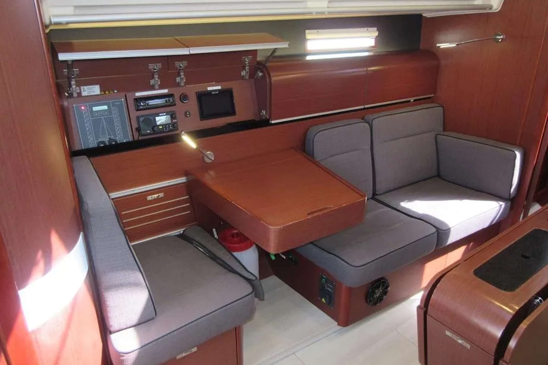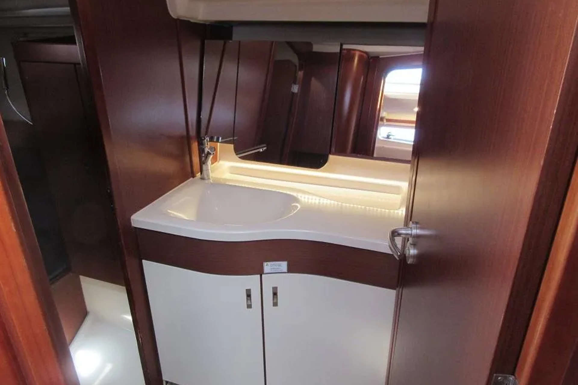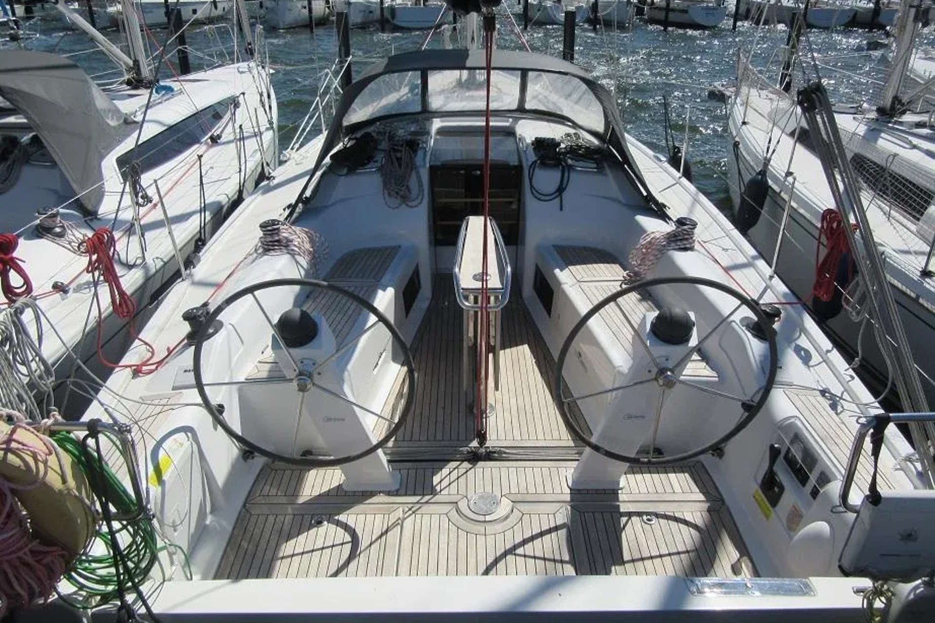 | Outside | 220 V-Landanschluss, Bootshaken, Cockpittisch, Deckbürste, elektr. Ankerwinsch, Festmacherleinen, Sprayhood, Teak auf Badeplattform |