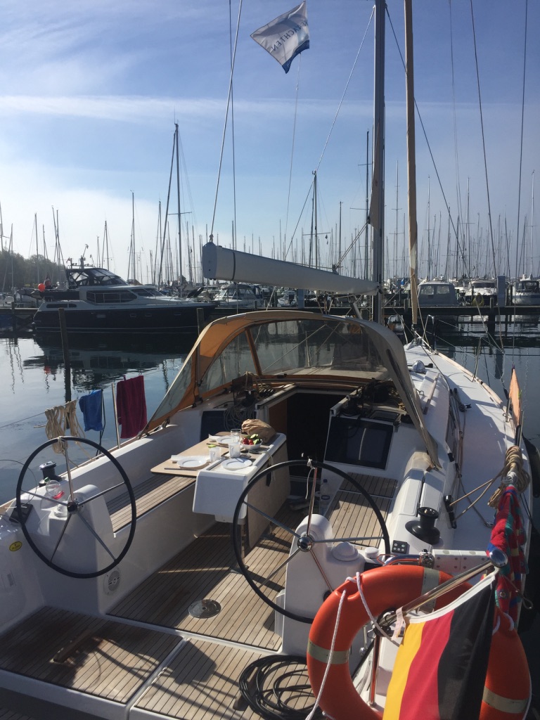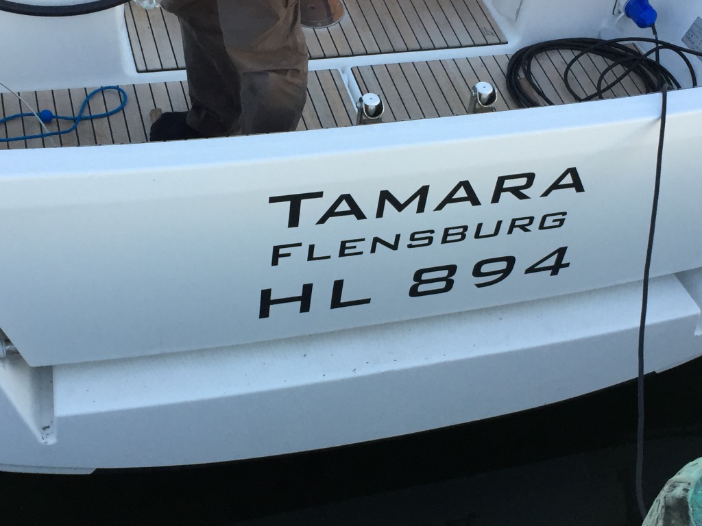 | Outside | Badeplattform, Bootshaken, Bugspriet, Cockpitlautsprecher, Cockpittisch, Deckbürste, elektr. Ankerwinsch, Fender, Festmacherleinen, Seereling, Sprayhood, Teak auf Badeplattform, Teak im Cockpit, Wantenschneider |