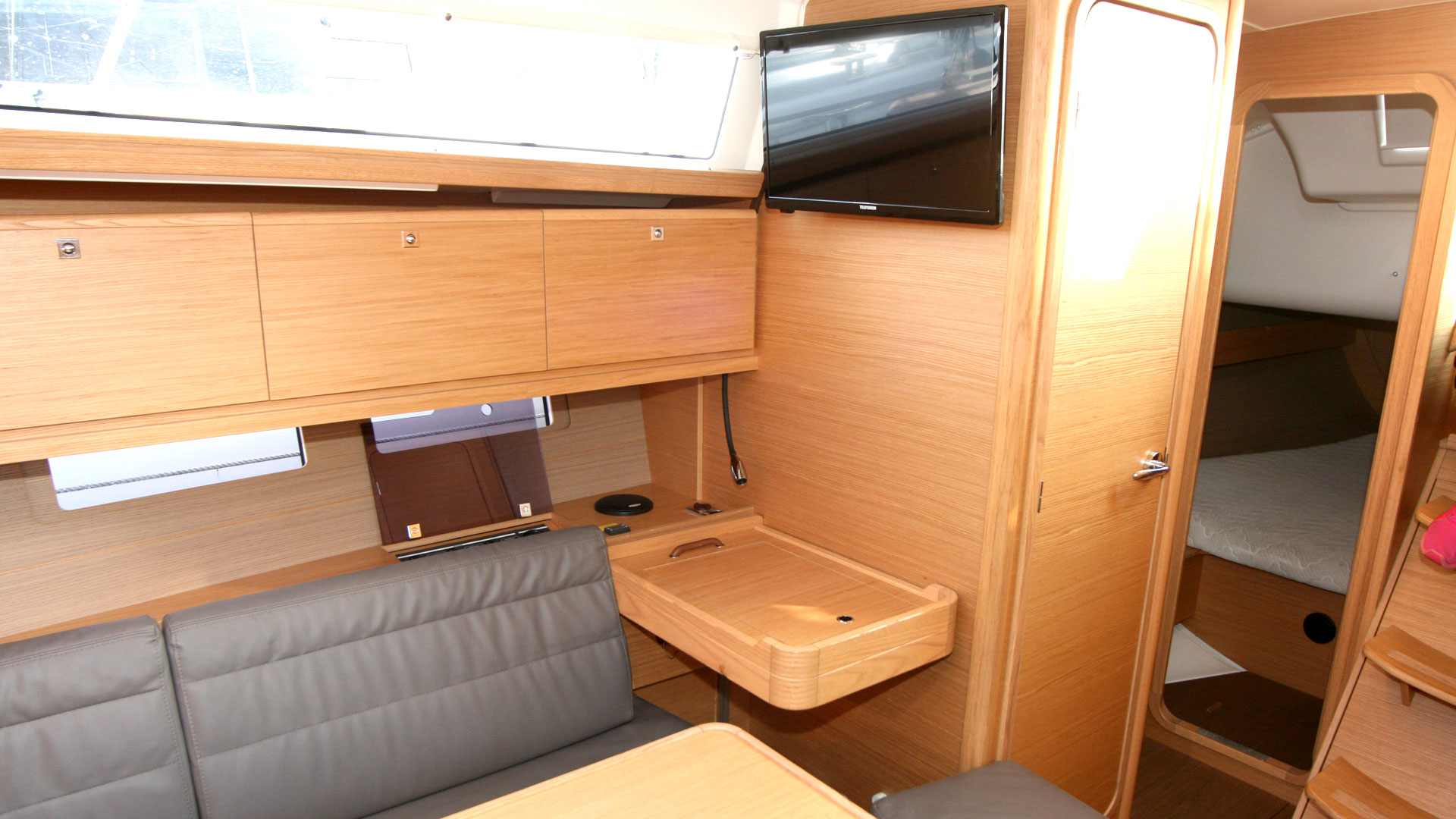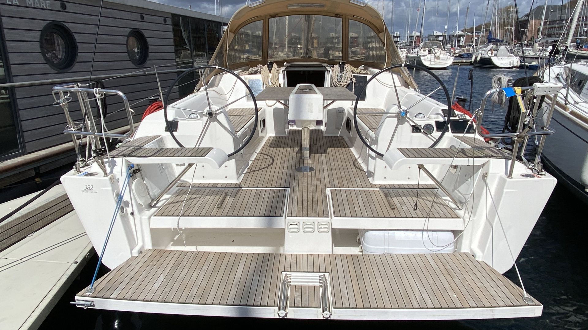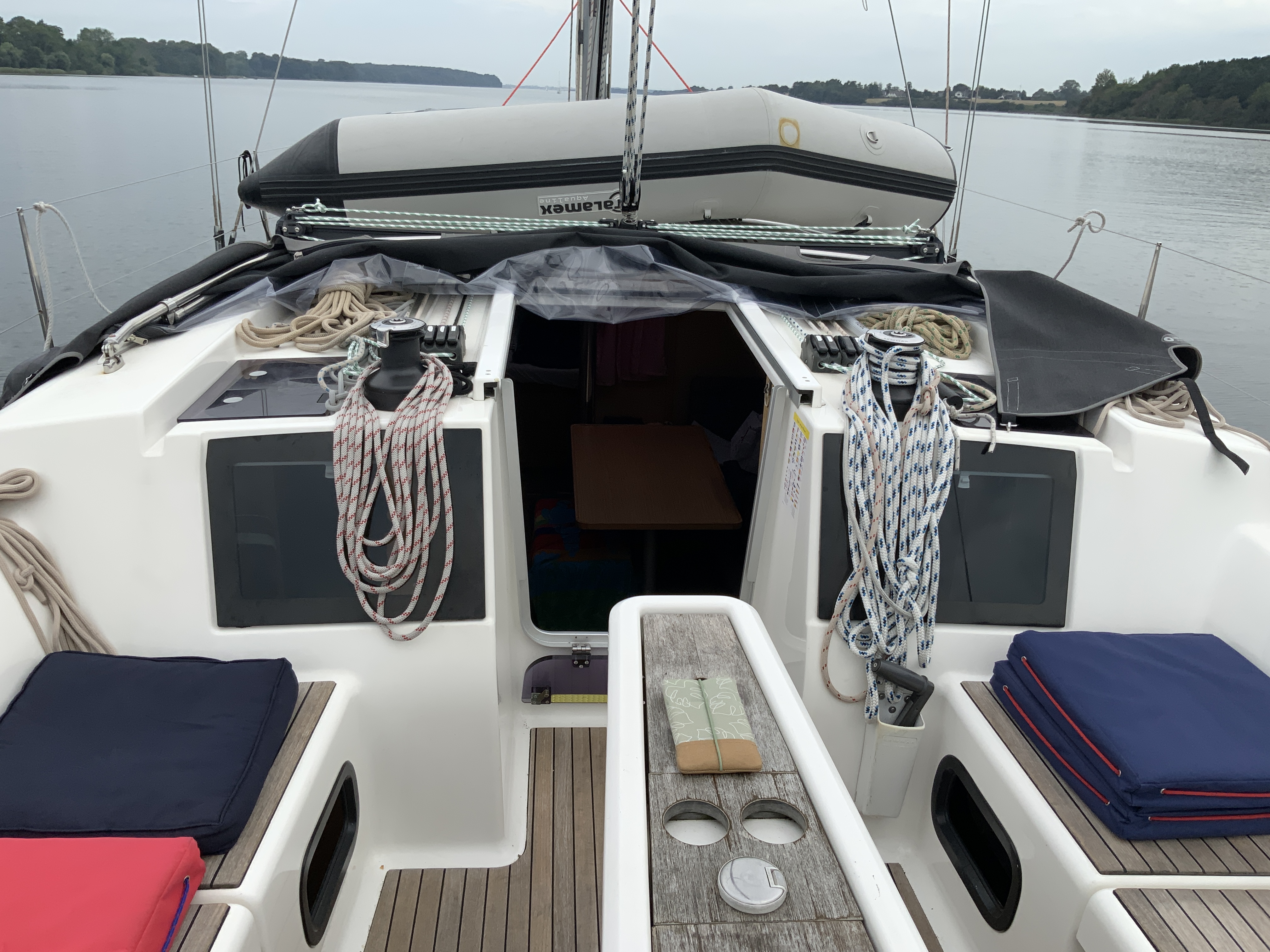 | Outside | Badeplattform, Bootshaken, Bugspriet, Cockpitlautsprecher, Cockpittisch, Deckbürste, elektr. Ankerwinsch, Faltpropeller, Fender, Festmacherleinen, Sprayhood, Teak auf Badeplattform, Teak im Cockpit, Wantenschneider |