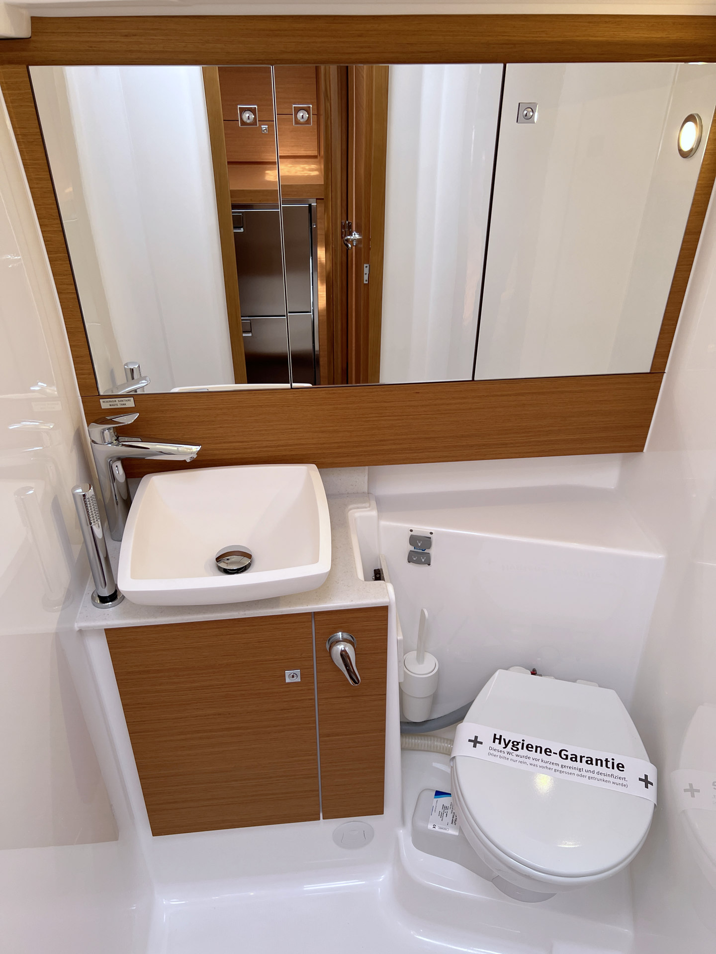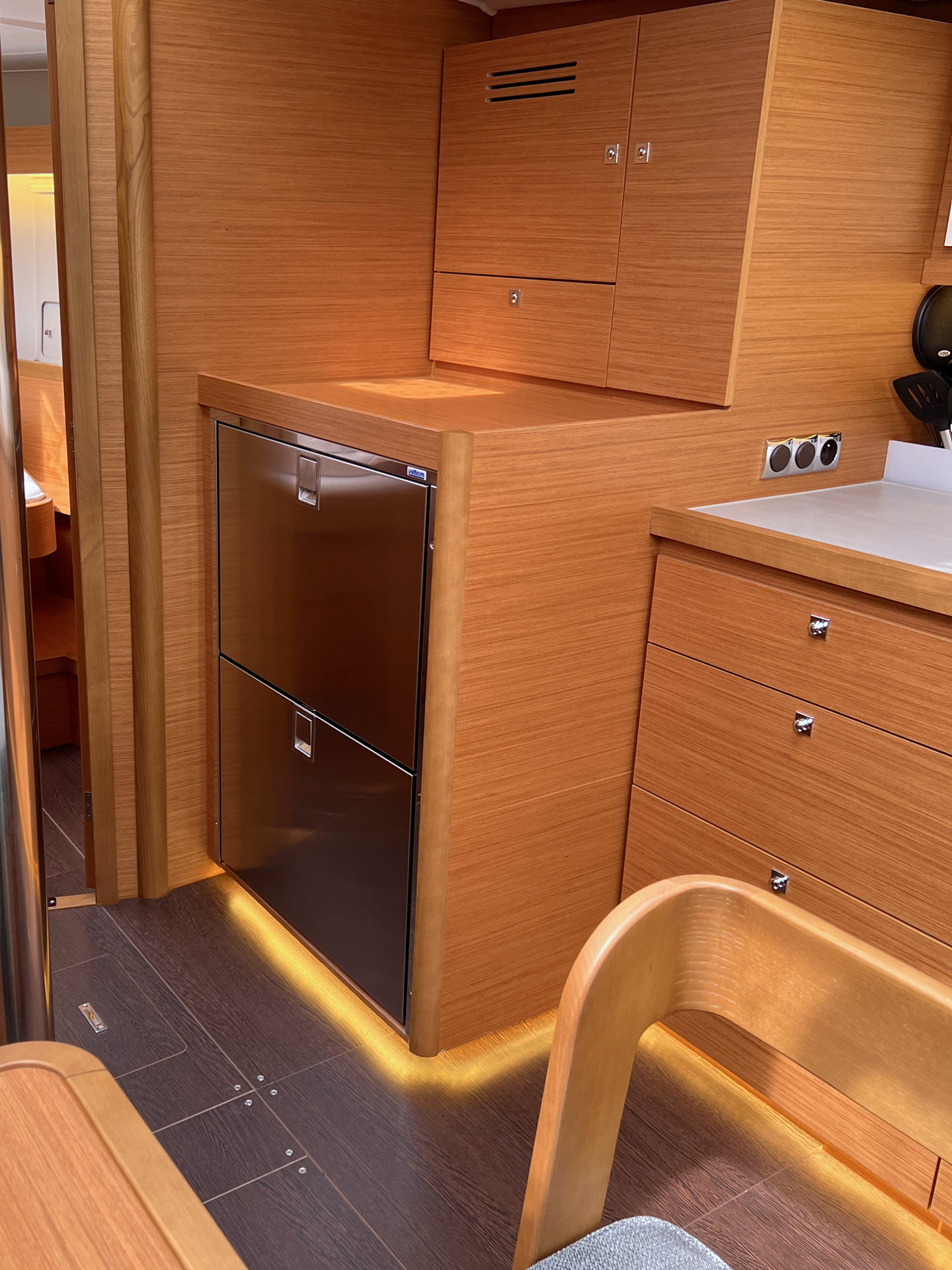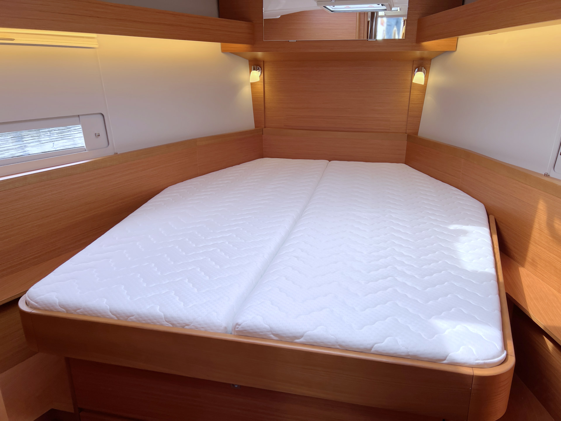 | Inside | 12V/220V-Steckdosen, Backofen, Borduhr, Diesel-Heizung, elektr. Druckwasserpumpe, elektrische Kühlbox, FUSION Sound System, Gasherd, Ladegerät, Landstromkabel, Pantryausstattung, Salontisch absenkbar, Spülbecken, Tablet PC, TV mit DVBT, Warmwasser, WC (elektr.), Weinschrank |