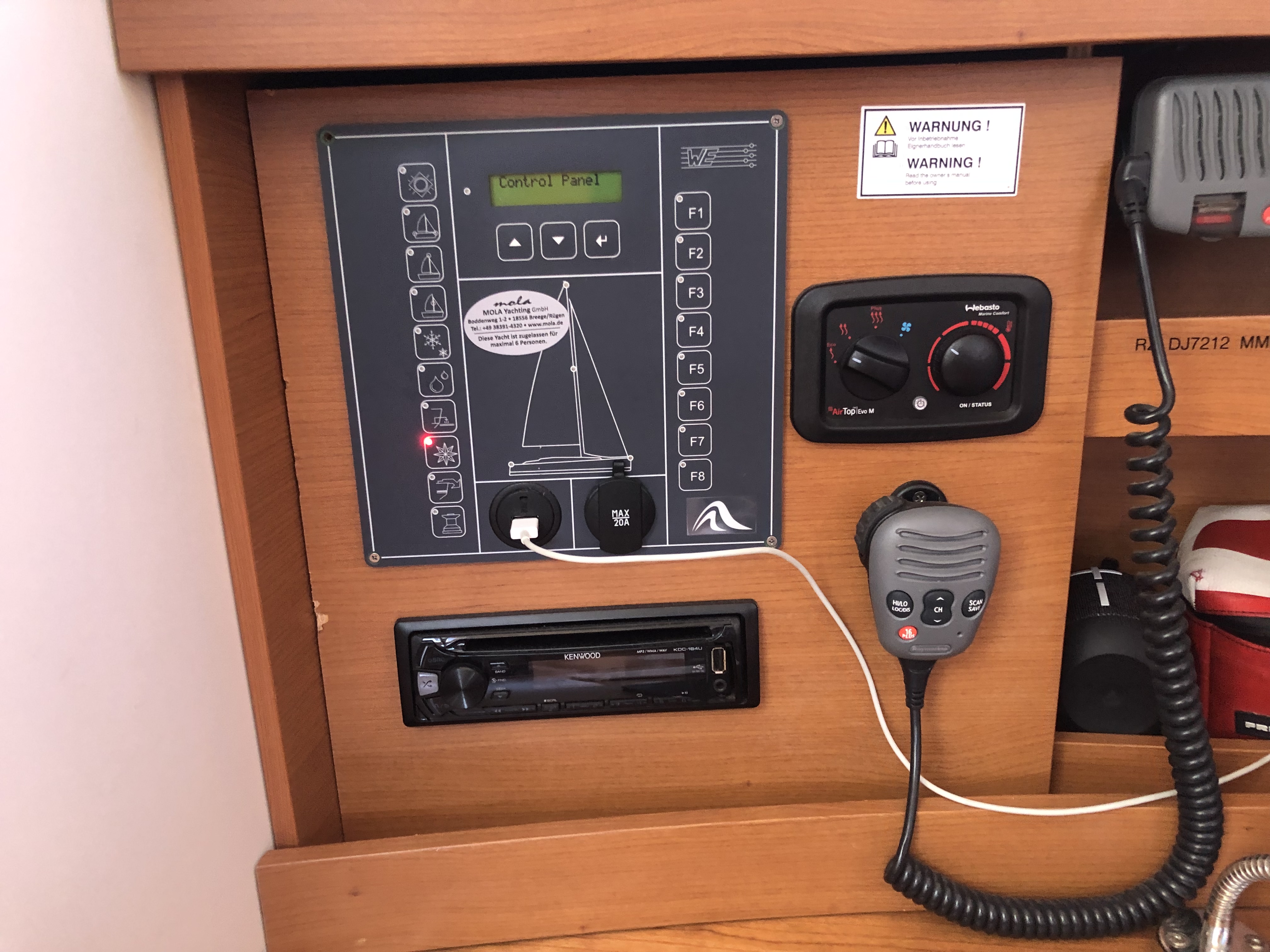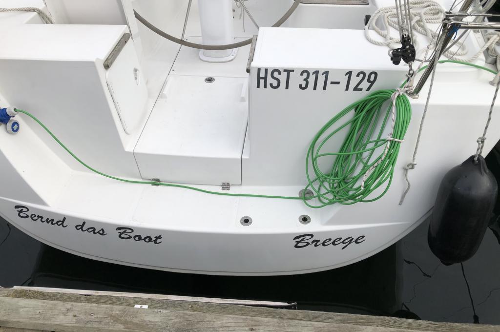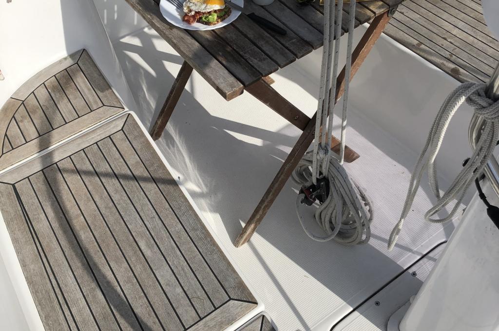 | Outside | 220 V-Landanschluss, Bootshaken, Delta-Anker, Fallwinschen, Fender, Festmacherleinen, Genuawinschen, selbstholend, Heckanker, Sprayhood, Windex |