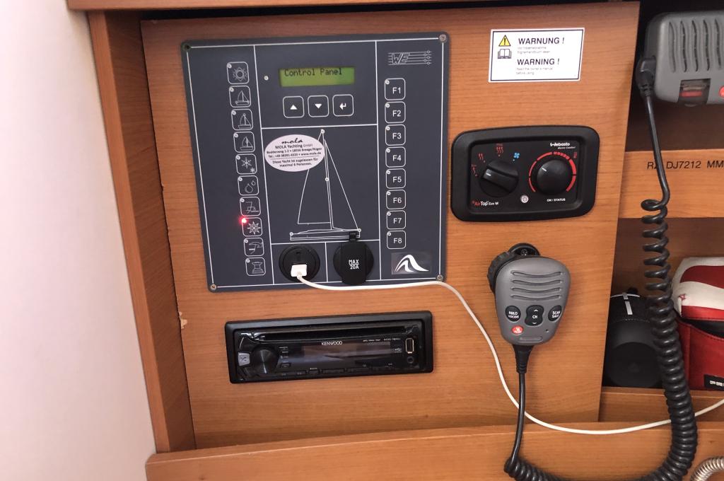 | Safety | Automatikwesten, Autopilot, Bootsmannstuhl, Bordwerkzeug, Feuerlöscher, Handbilgepumpe, Nebelhorn, Notsignale, Rettungsinsel, Rettungsring, Taschenlampe, UKW-Funk |