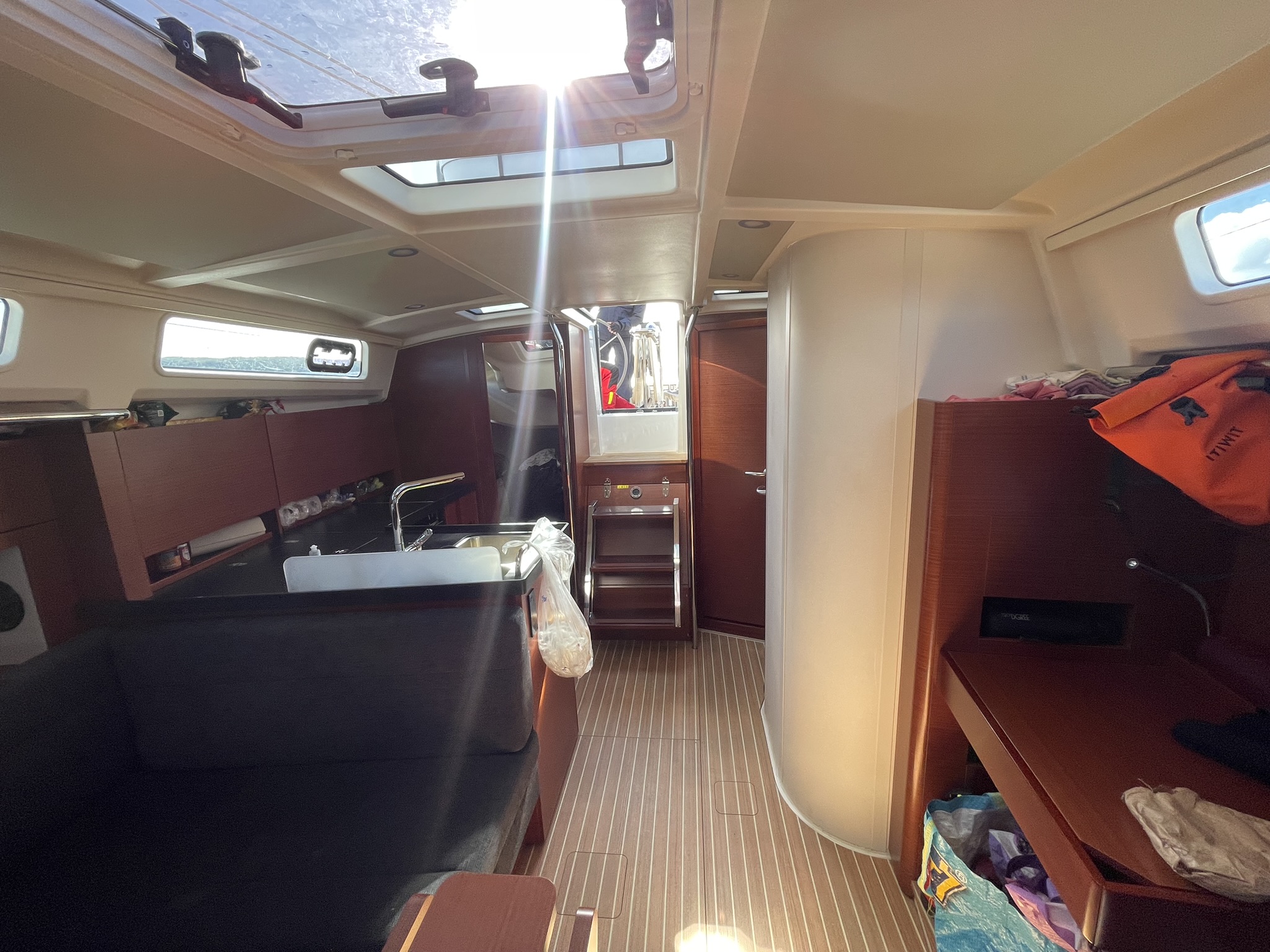 | Safety | AIS Empfänger, Automatikwesten, Bootsmannstuhl, Bordwerkzeug, Bugstrahlruder, Feuerlöscher, Handbilgepumpe, Nebelhorn, Notsignale, Rettungsinsel, Rettungsring, Taschenlampe, UKW-Funk m. DSC |