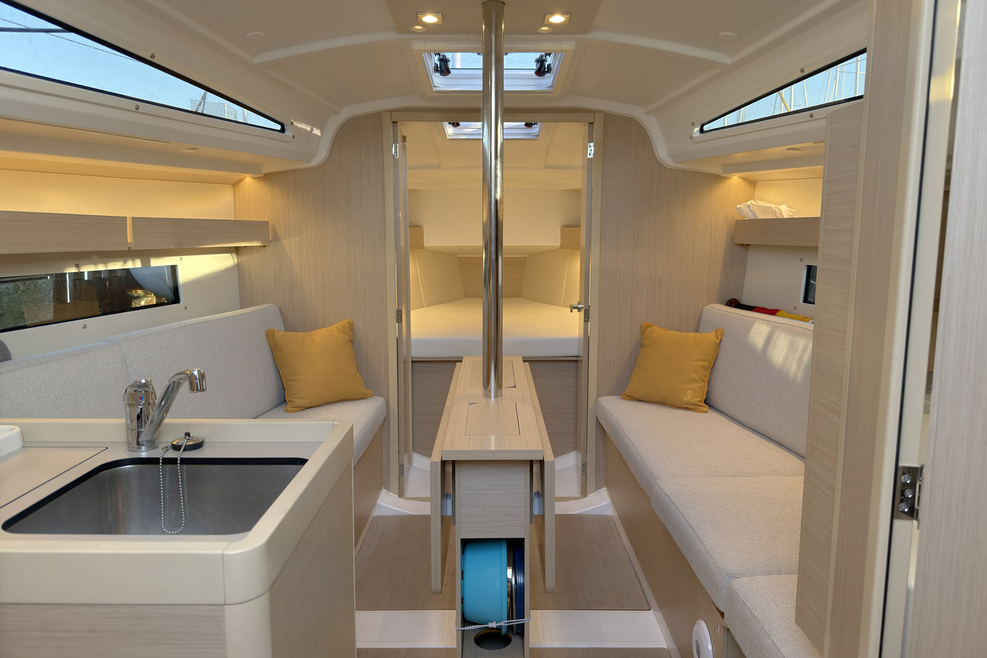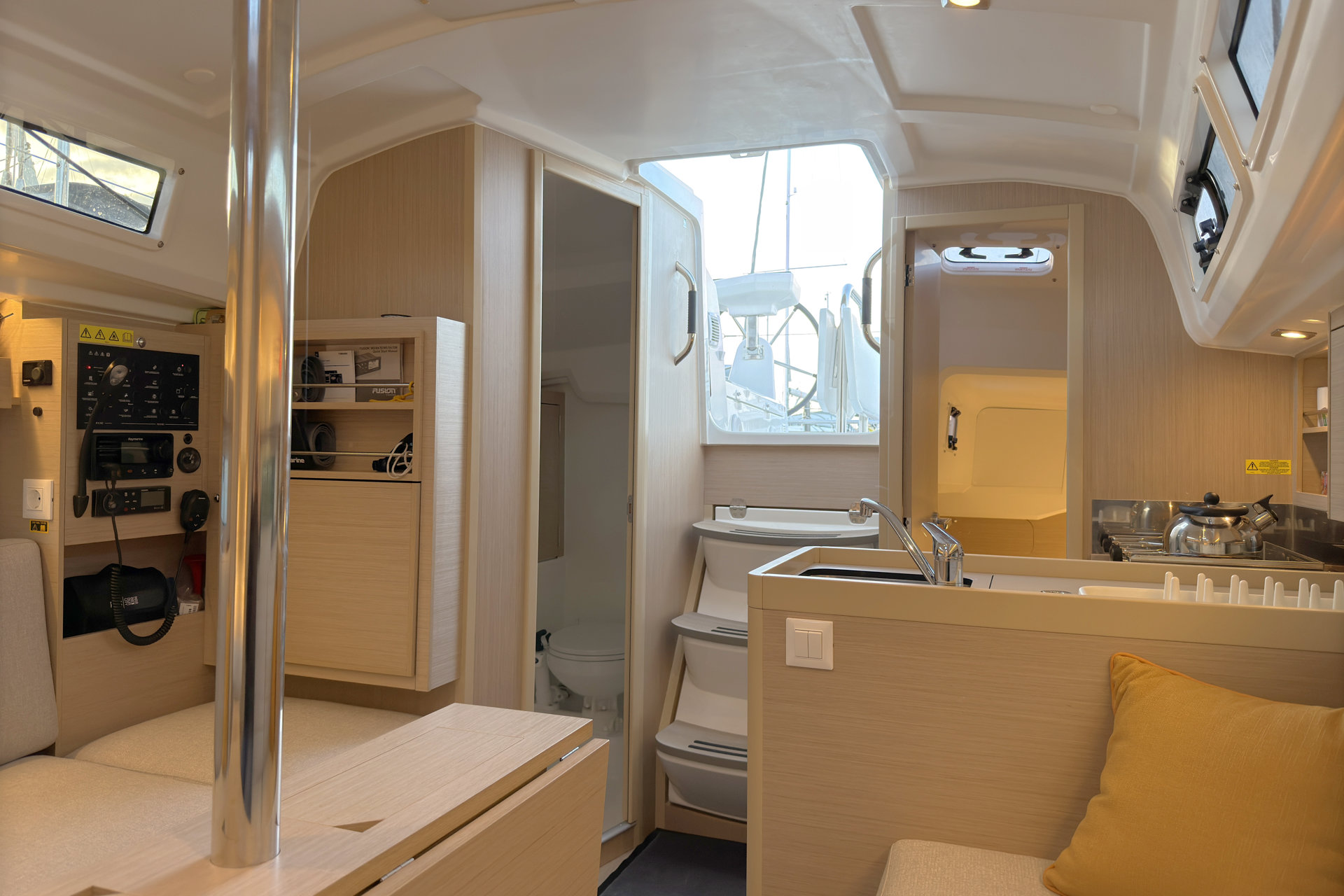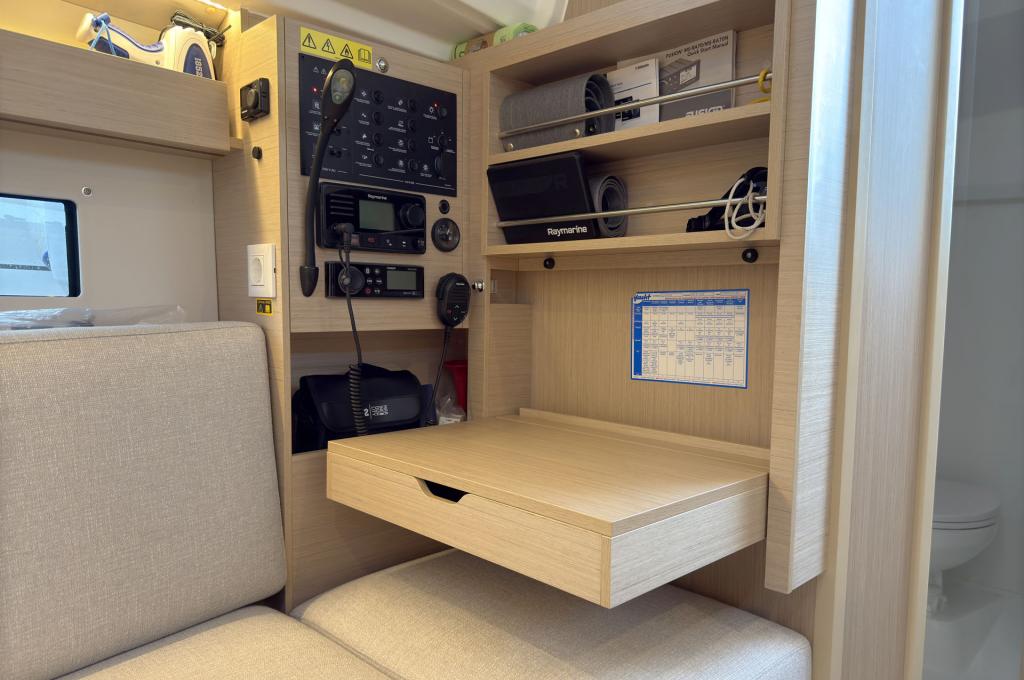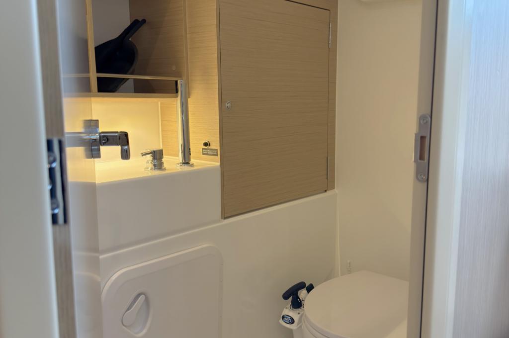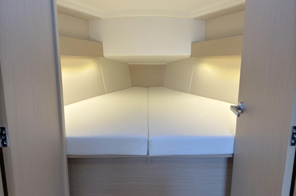 | Inside | 12V/220V-Steckdosen, Borduhr, Diesel-Heizung, elektrische Kühlbox, Geschirr, Inverter 12V/220V, Kühlschrank, Ladegerät, Radio mit USB und Bluetooth, Spülbecken, TV, USB Steckdosen in Salon und Kabinen, Ventilatoren in Kabinen, Warmwasser |