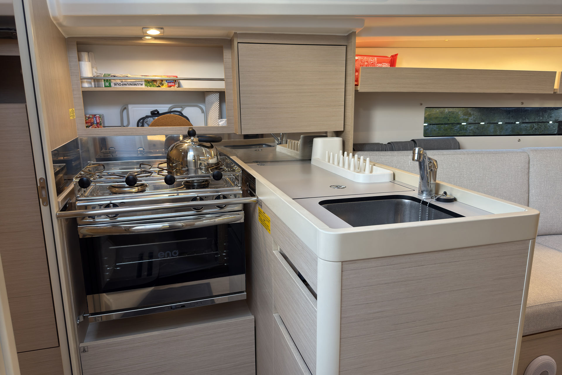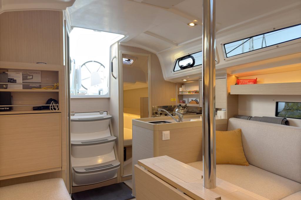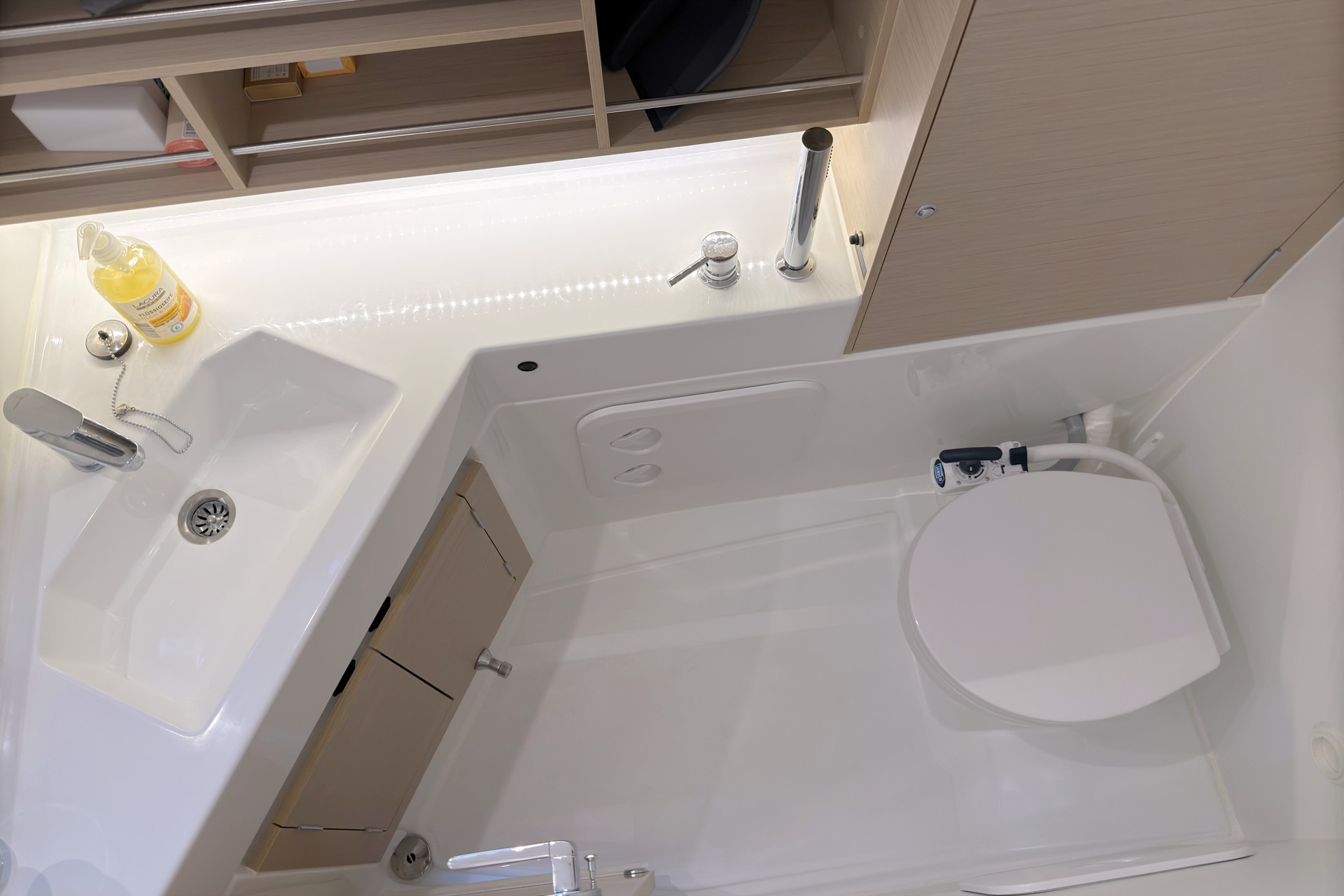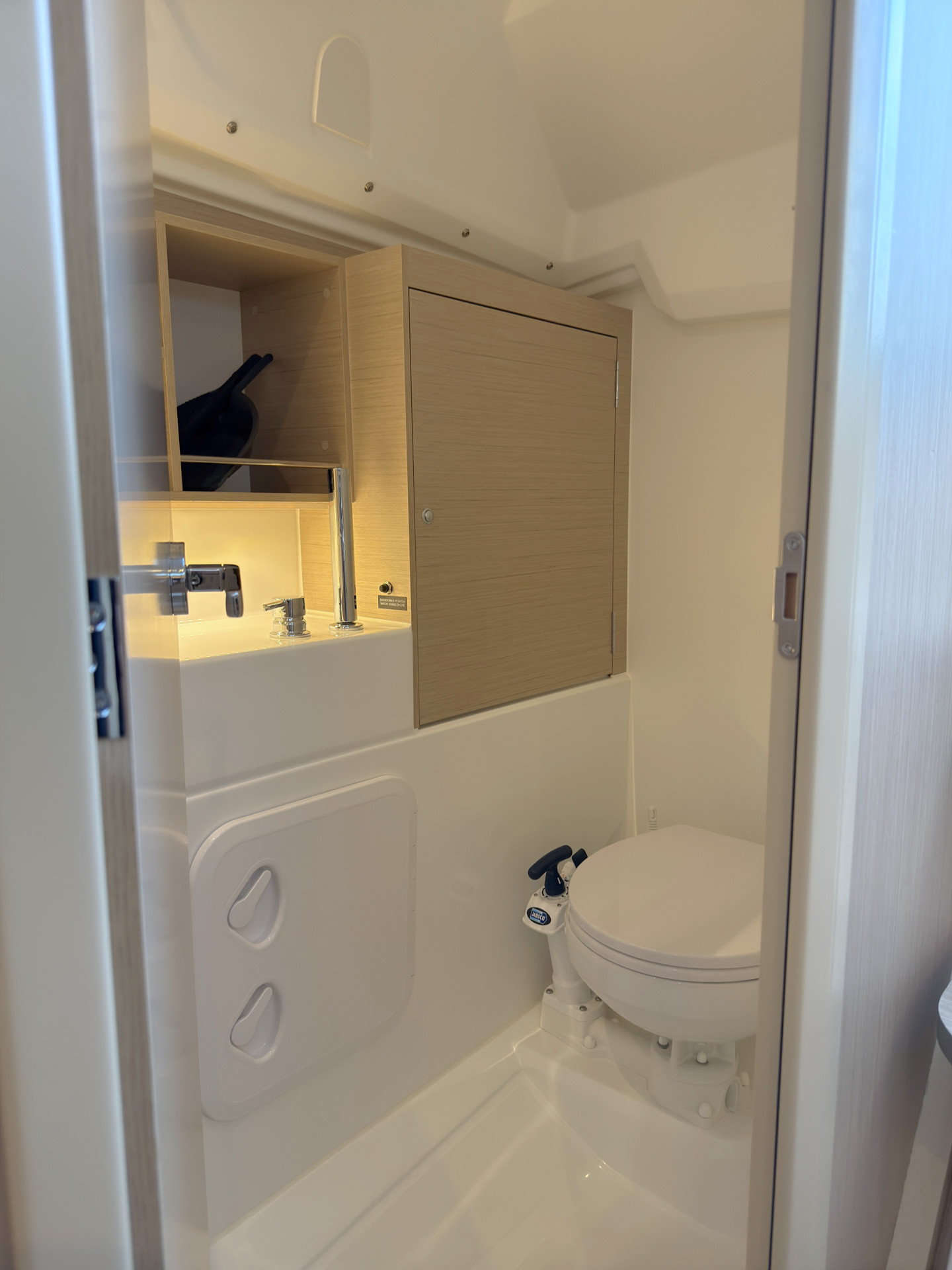 | Outside | Badeplattform, Biminitop, Bootshaken, Cockpitdusche warm/kalt, Cockpitlautsprecher, Cockpittisch, Deckbürste, elektr. Ankerwinsch, Fender, Festmacherleinen, Teak auf Badeplattform |