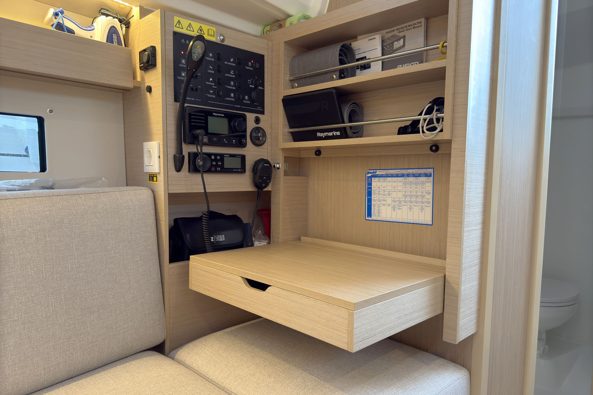 | Safety | AIS Empfänger, AIS-Sender, Ankerball, Ankerlicht, Automatikwesten, Autopilot, Bilgepumpe, Bordapotheke, Bordwerkzeug, Bugstrahlruder, Feuerlöscher, Handscheinwerfer, Navigationslichter, Navtex, Nebelhorn, Rettungsinsel, Rettungsring, UKW-Funk |