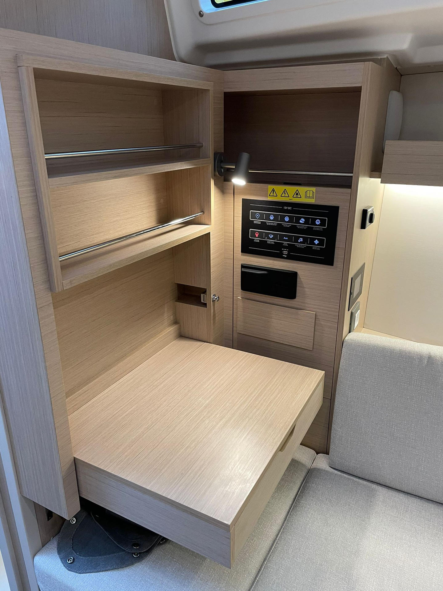 | Safety | AIS Empfänger, Ankerball, Automatikwesten, Autopilot, Bilgepumpe, Bootsmannstuhl, Bordwerkzeug, Bugstrahlruder, Feuerlöscher, Flaggen, Handscheinwerfer, Rettungsinsel, Rettungsring, UKW-Funk |