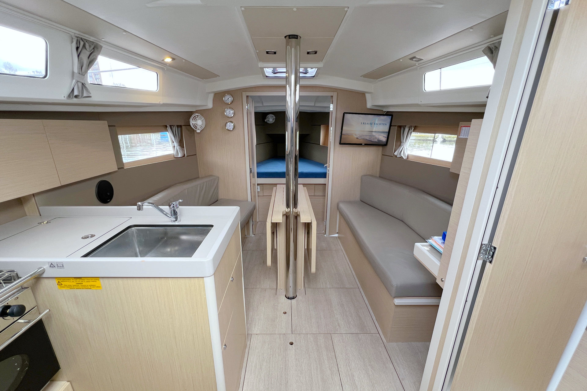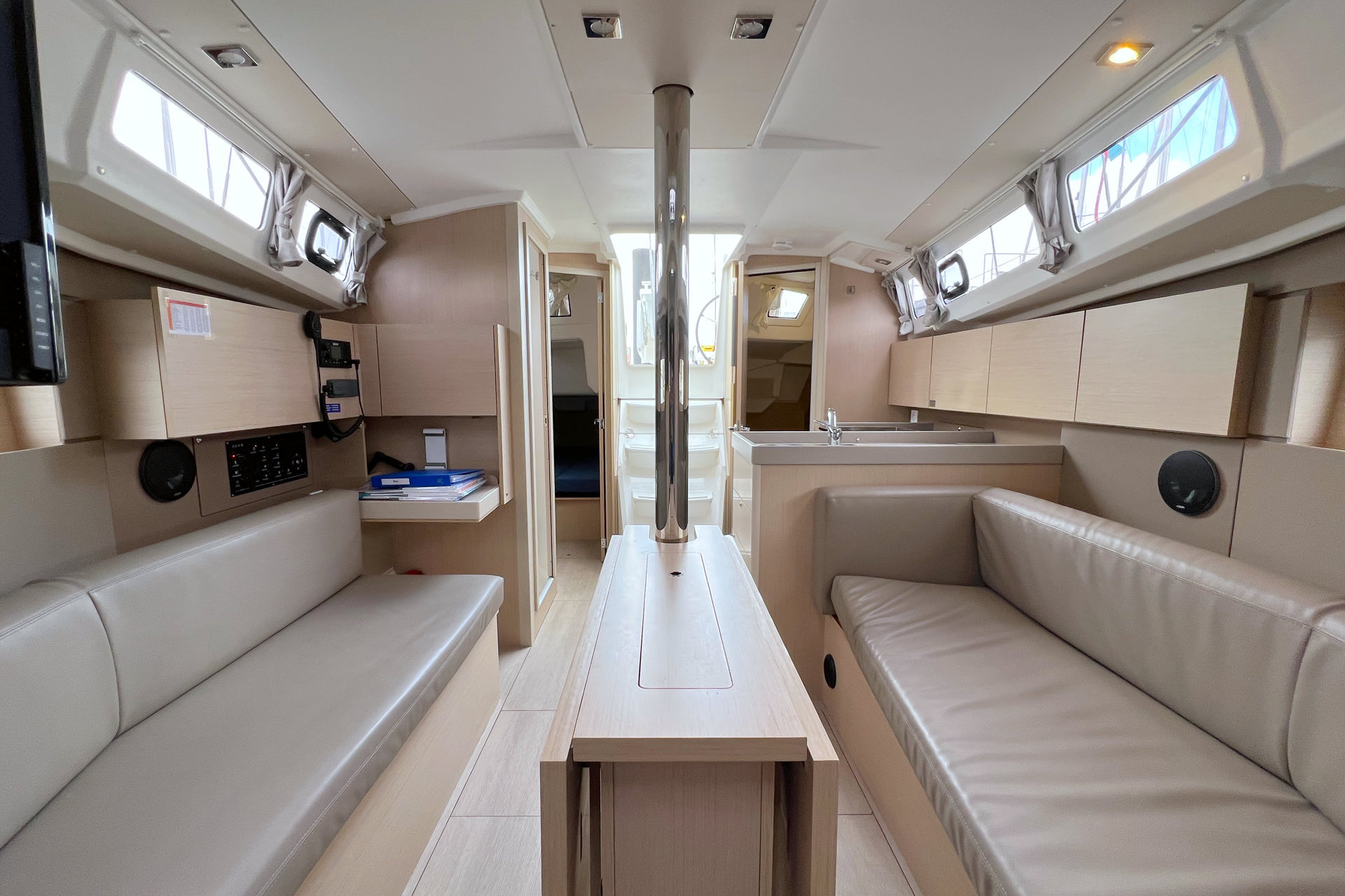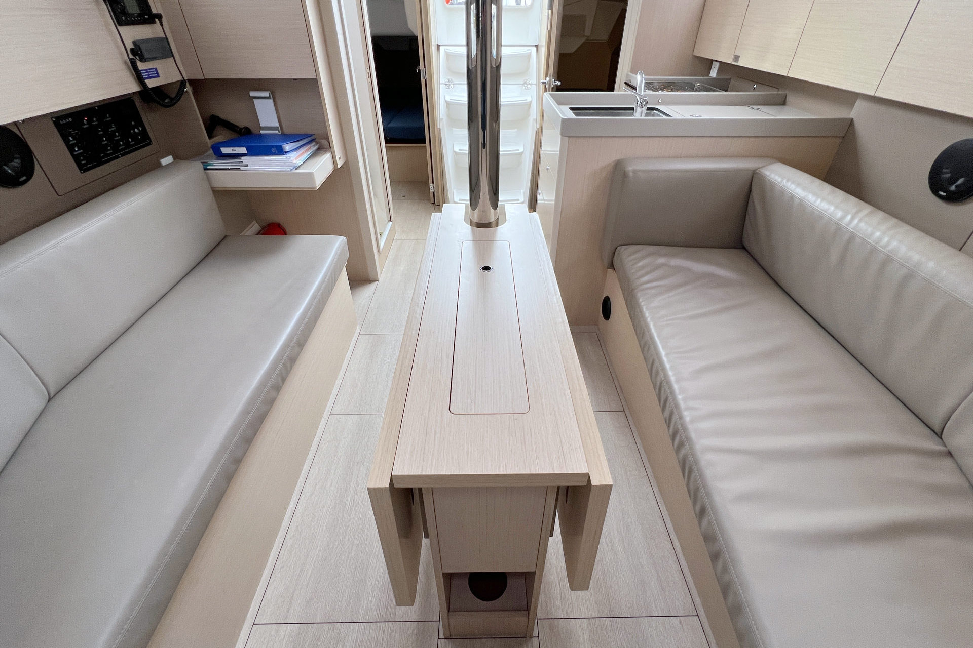 | Outside | Cockpitdusche warm/kalt, Cockpitlautsprecher, Cockpittisch, elektr. Ankerwinsch, Fernsteuerung für elektr. Ankerwinsch, Sprayhood, Teak im Cockpit |