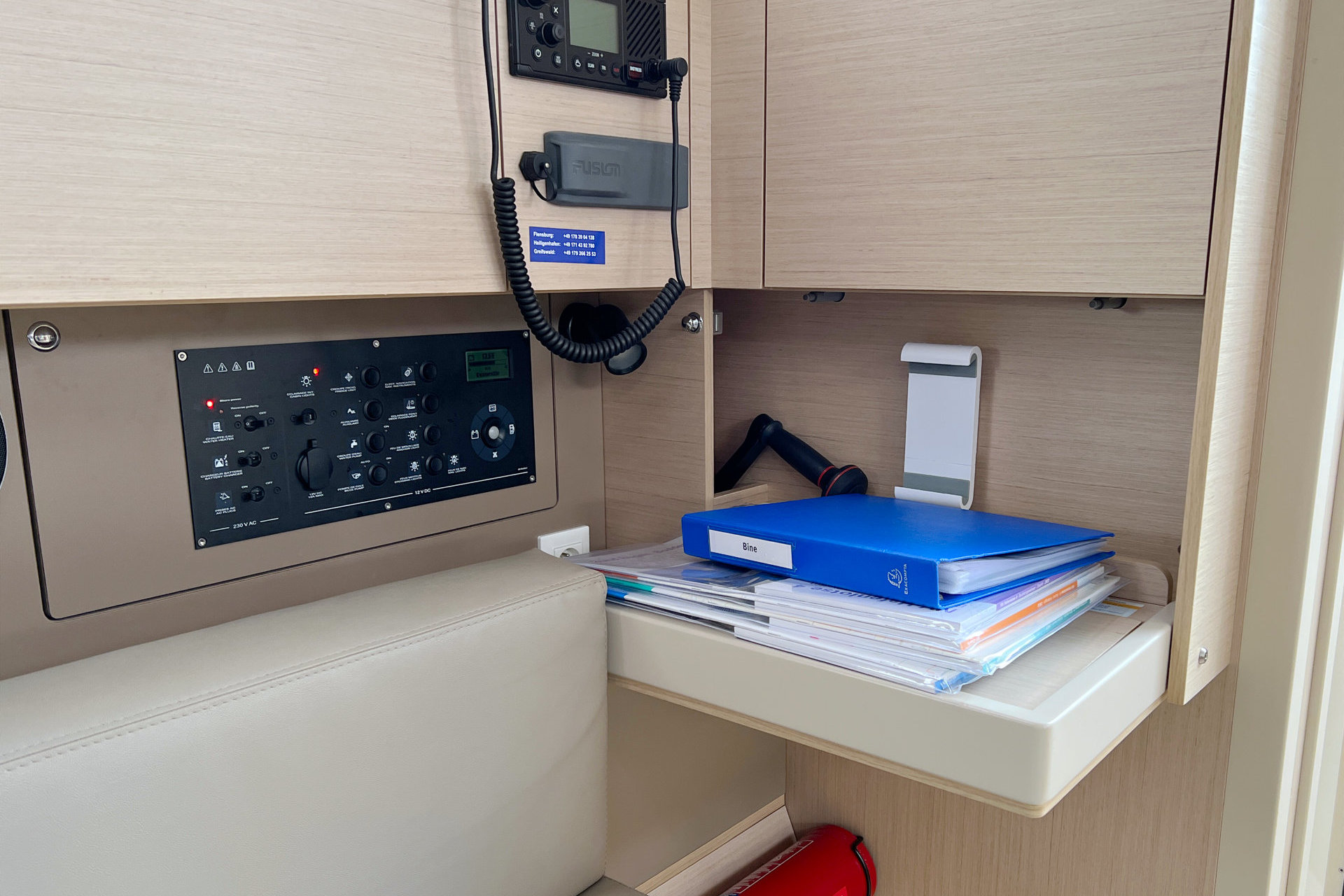 | Safety | AIS Empfänger, Automatikwesten, Autopilot, Bugstrahlruder, Sicherheitsausrüstung, UKW-Funk |