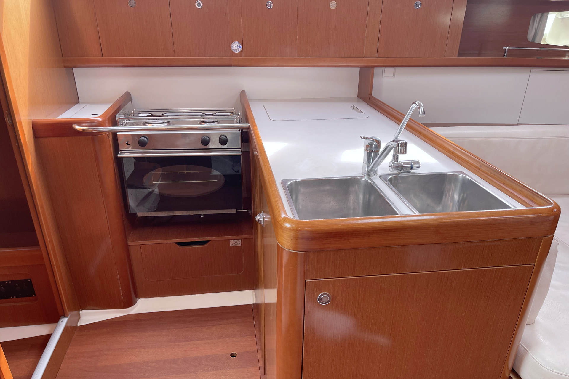 | Outside | 220 V-Landanschluss, Anker mit Kette, Badeleiter, Bootshaken, Bugkorb, Cockpittisch, Deckbürste, Fender, Festmacherleinen, Kugelfender, Seereling, Sprayhood, Wantenschneider |
