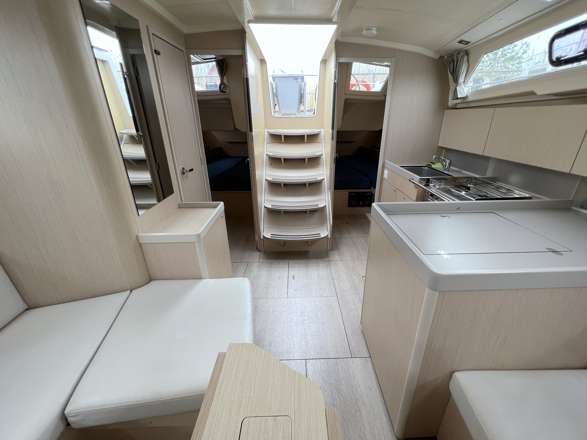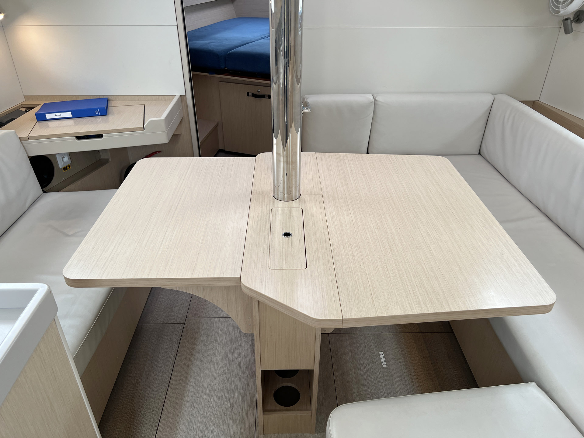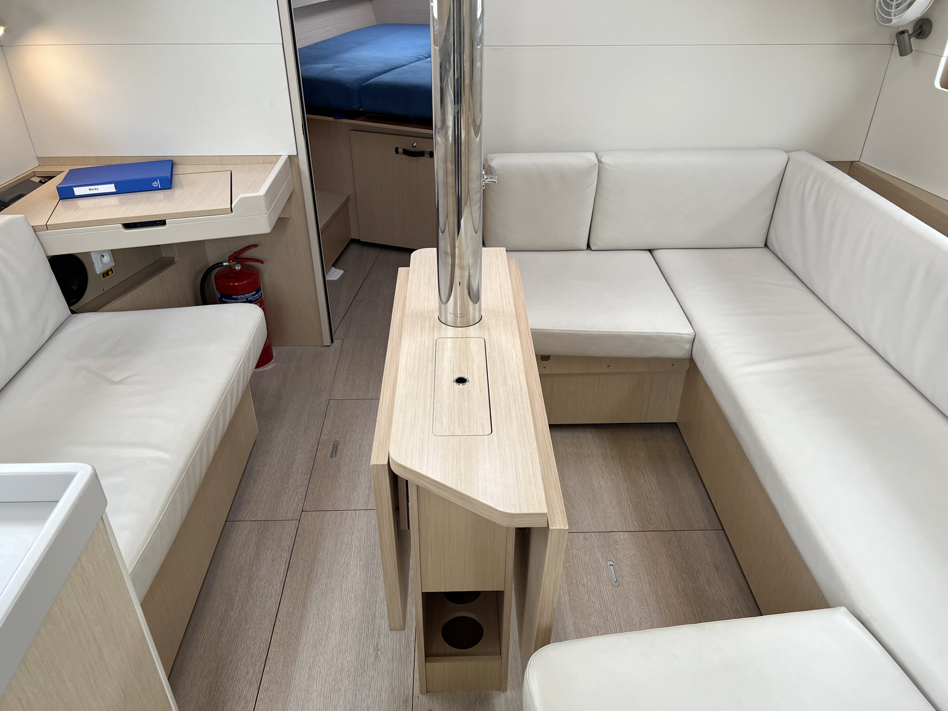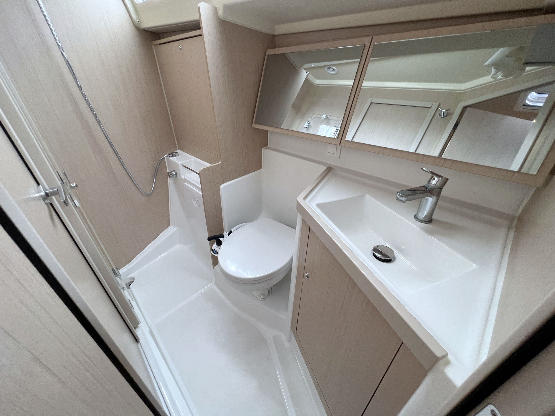 | Outside | Cockpitdusche warm/kalt, Cockpitlautsprecher, Cockpittisch, elektr. Ankerwinsch, Fernsteuerung für elektr. Ankerwinsch, Sprayhood, Teak im Cockpit |